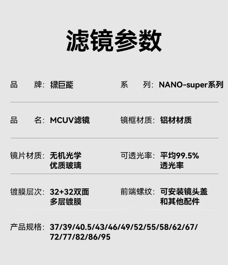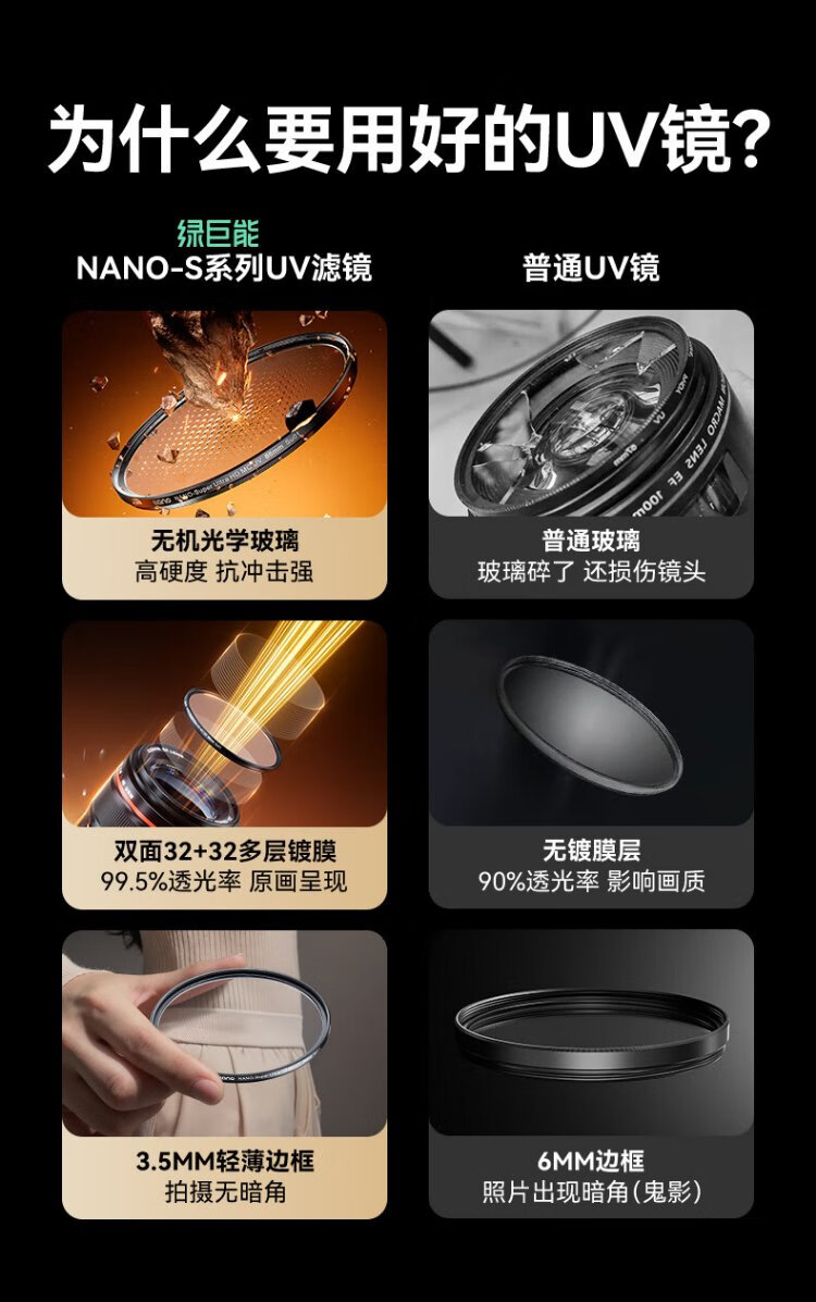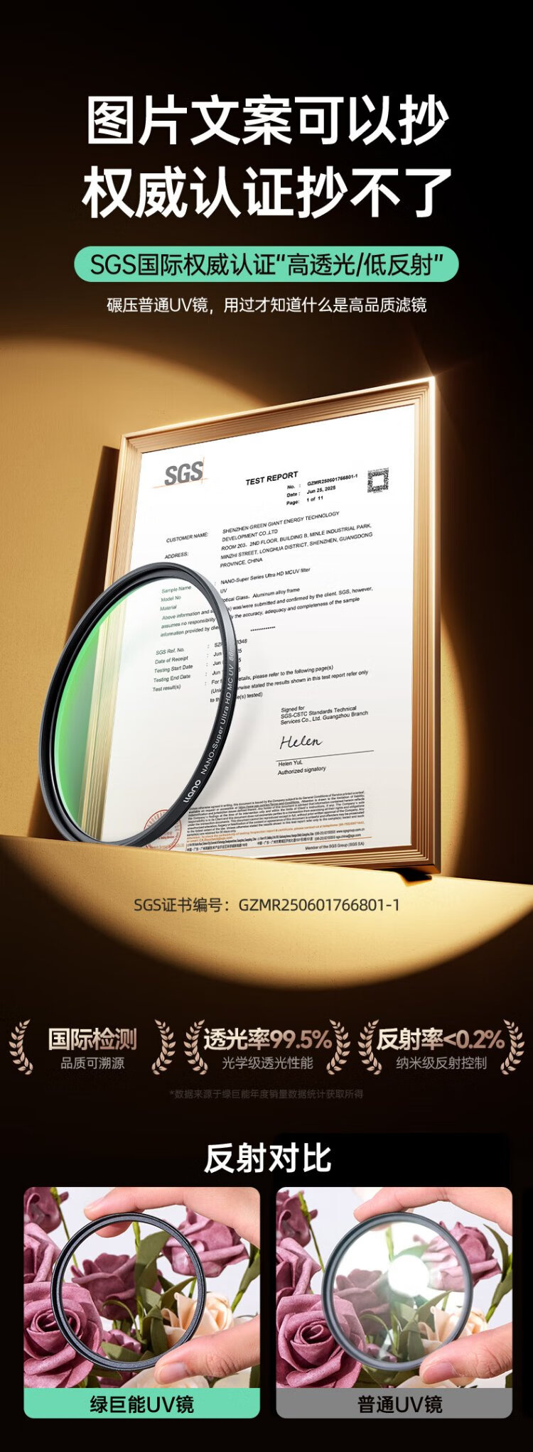 Green giant energy (llano) MC UV mirror 67mm filter lens protective mirror HD high transparency without dark corners suitable for Canon Sony Fuji Xiaomi 14/15ultra vivo X200 Ultra Tamron