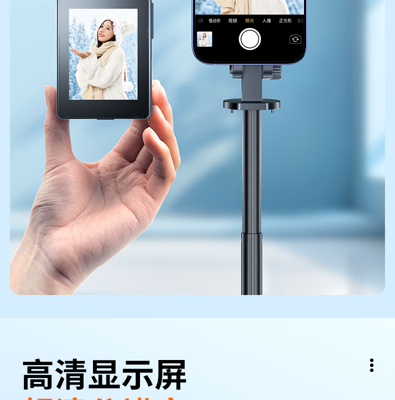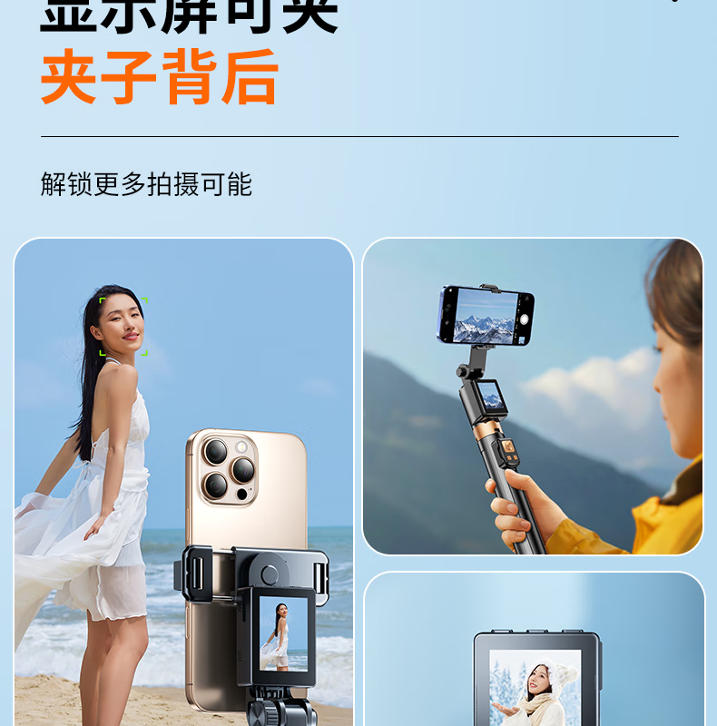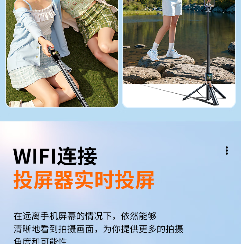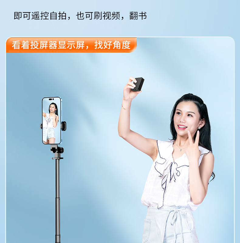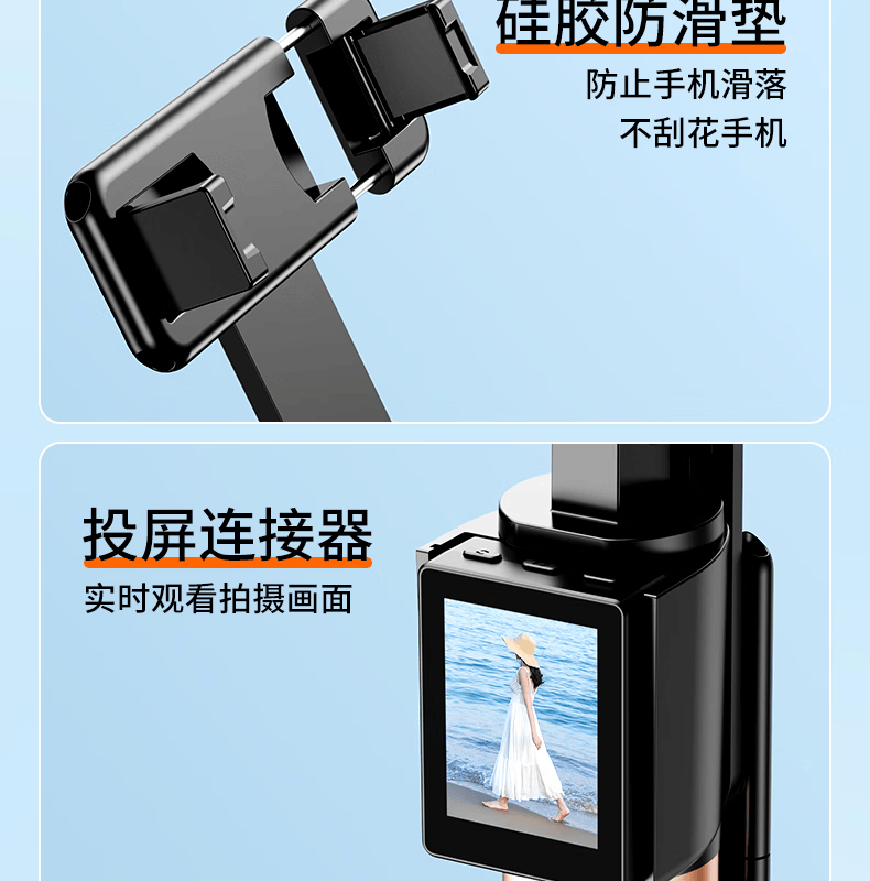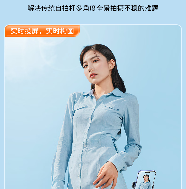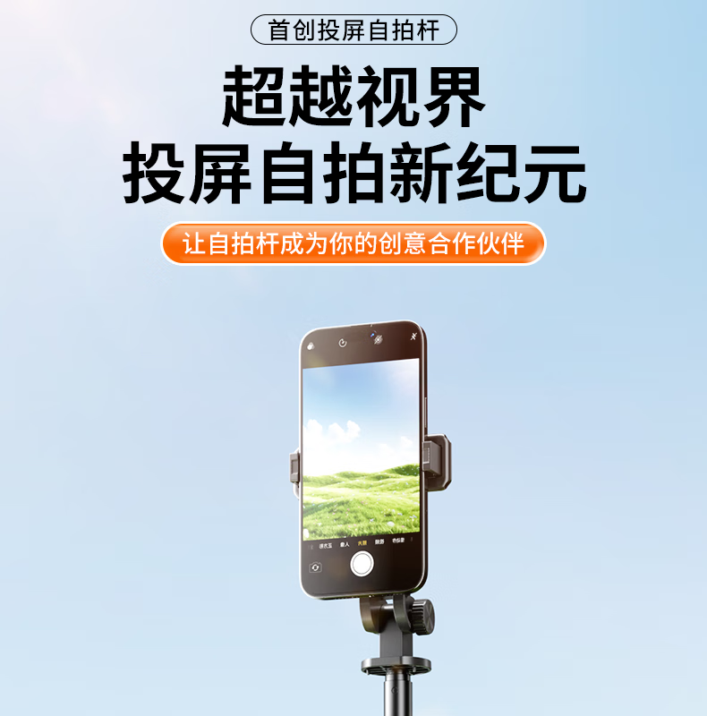 FUNSNAP's new screen projection selfie stick real-time display of mobile phone rear camera artifact 360-degree rotation handheld anti-shake telescopic rod travel portable selfie screen high-definition photography bracket