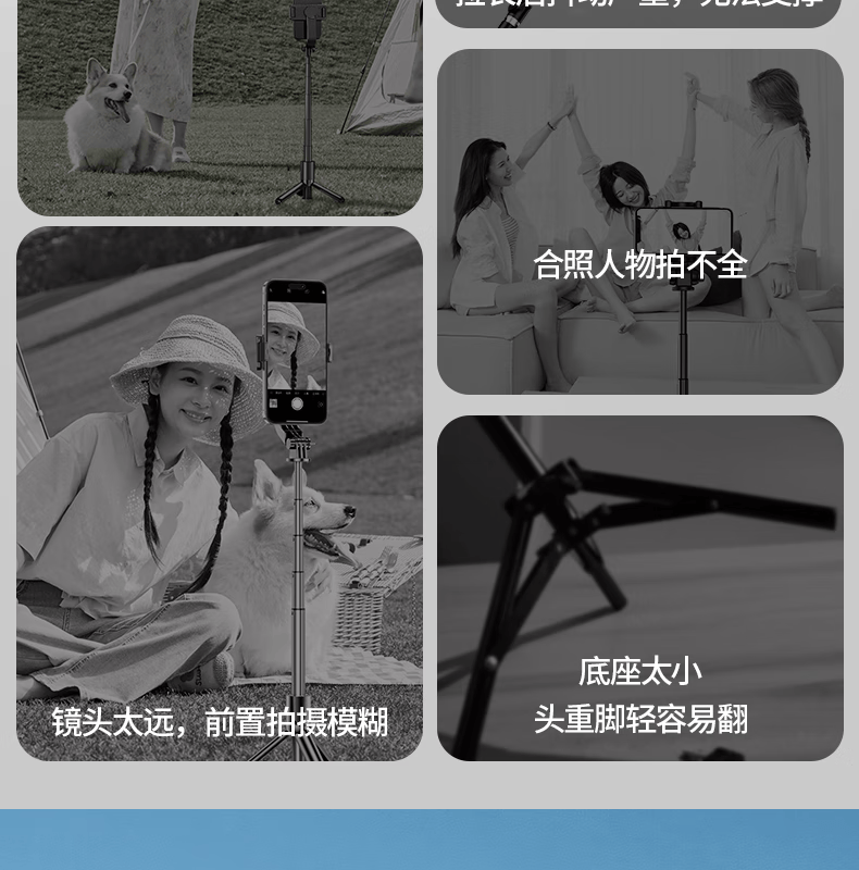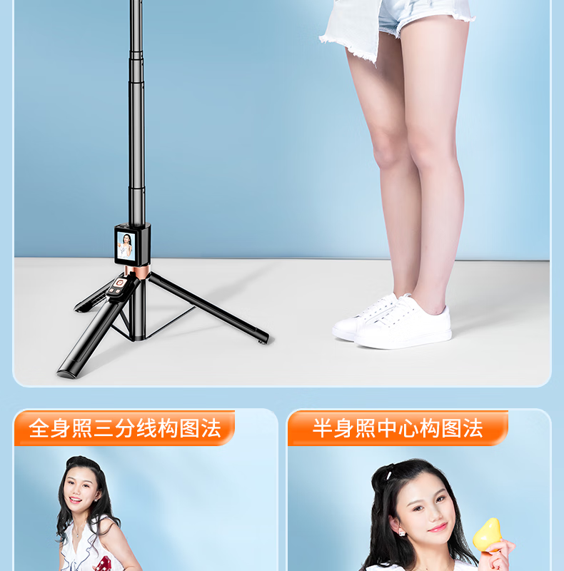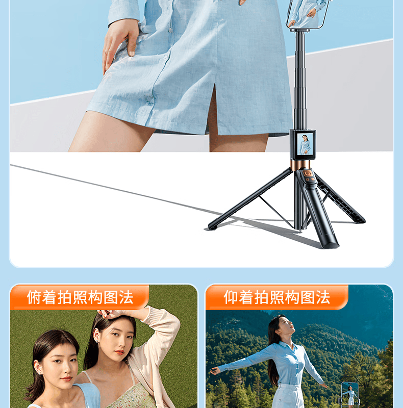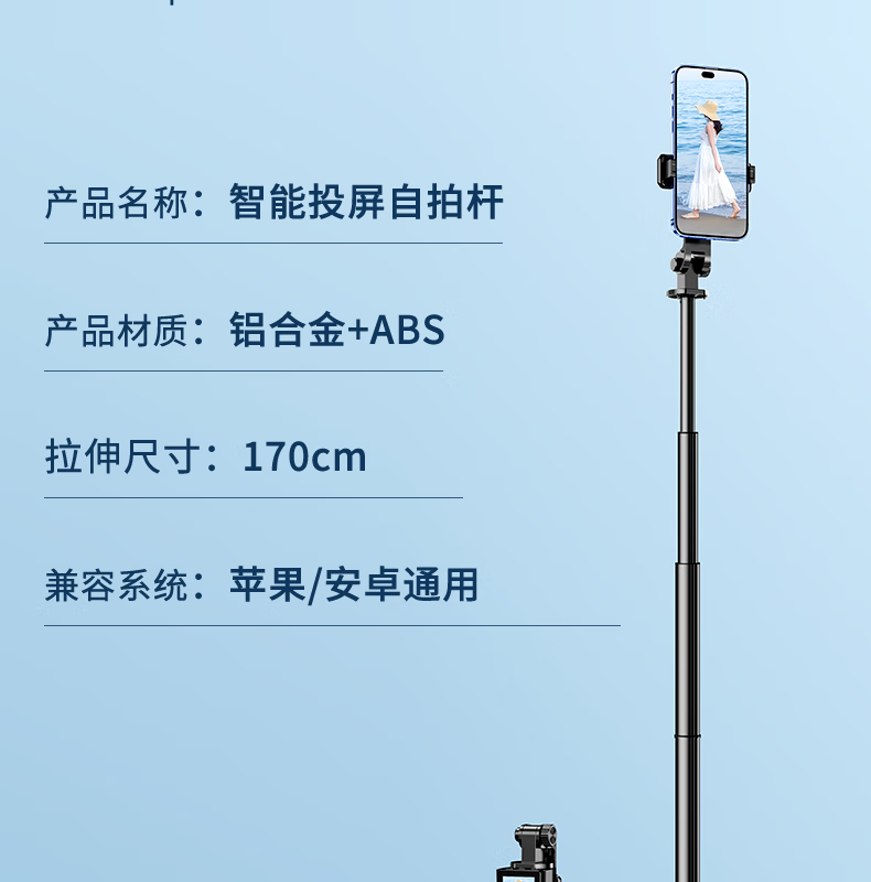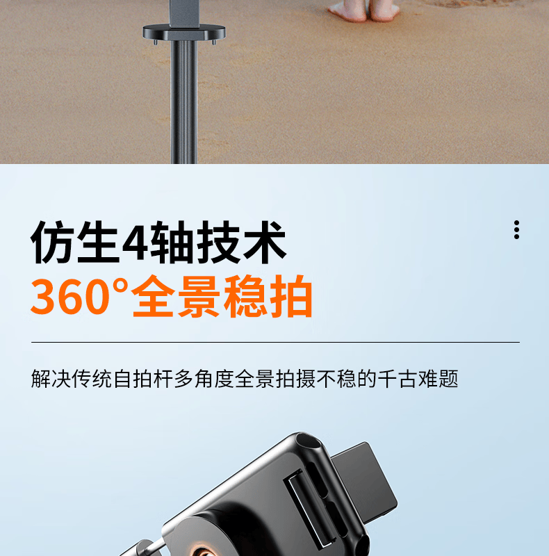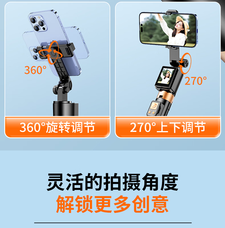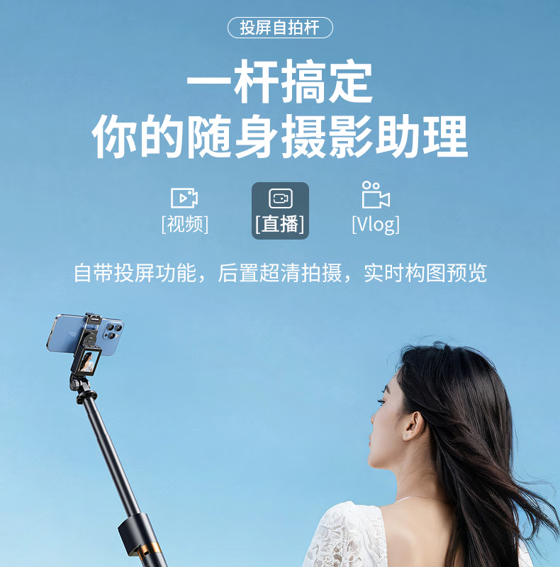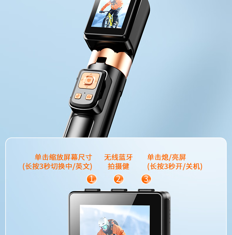 FUNSNAP's new screen projection selfie stick real-time display of mobile phone rear camera artifact 360-degree rotation handheld anti-shake telescopic rod travel portable selfie screen high-definition photography bracket