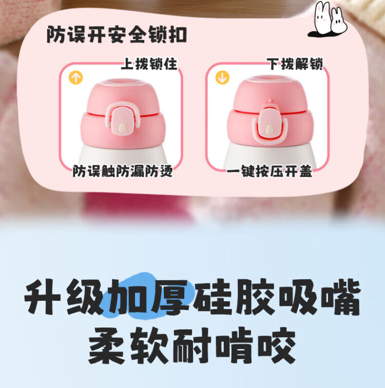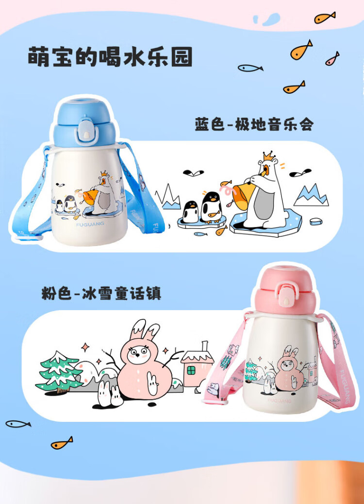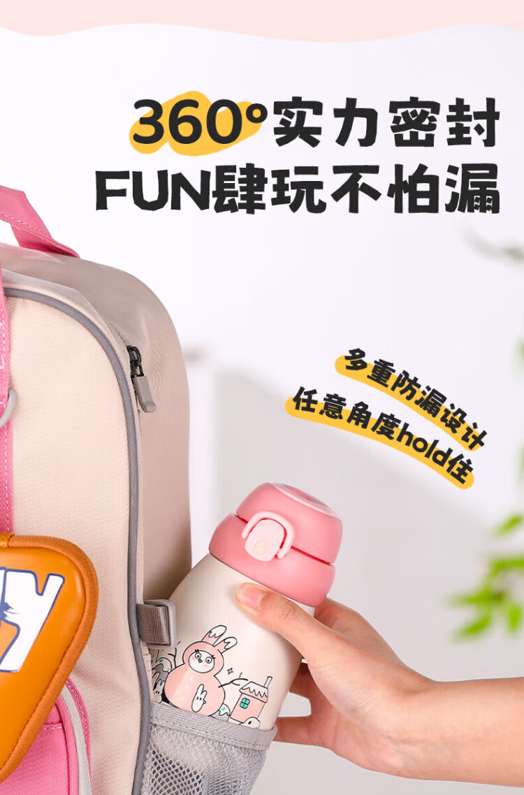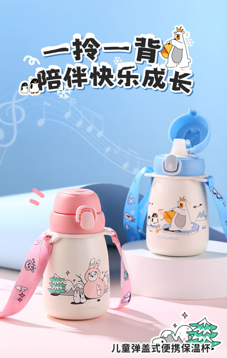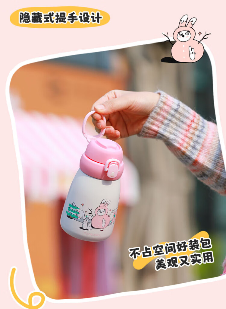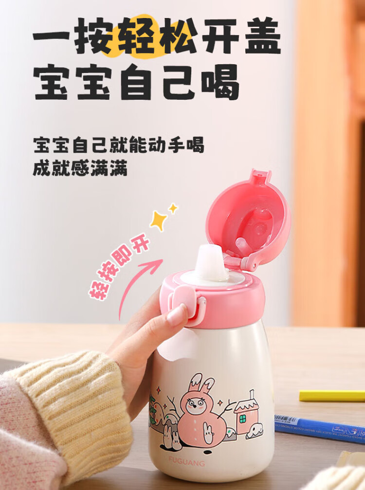 FGA Fuguang children's thermos cup for boys and girls kindergarten students straw water cup gift cup 350ml pink