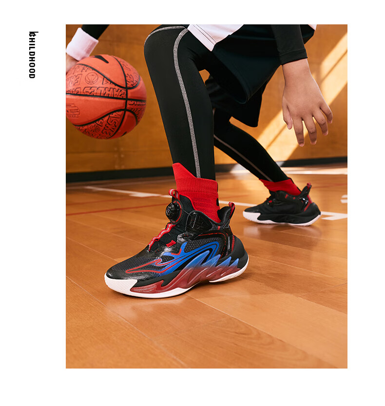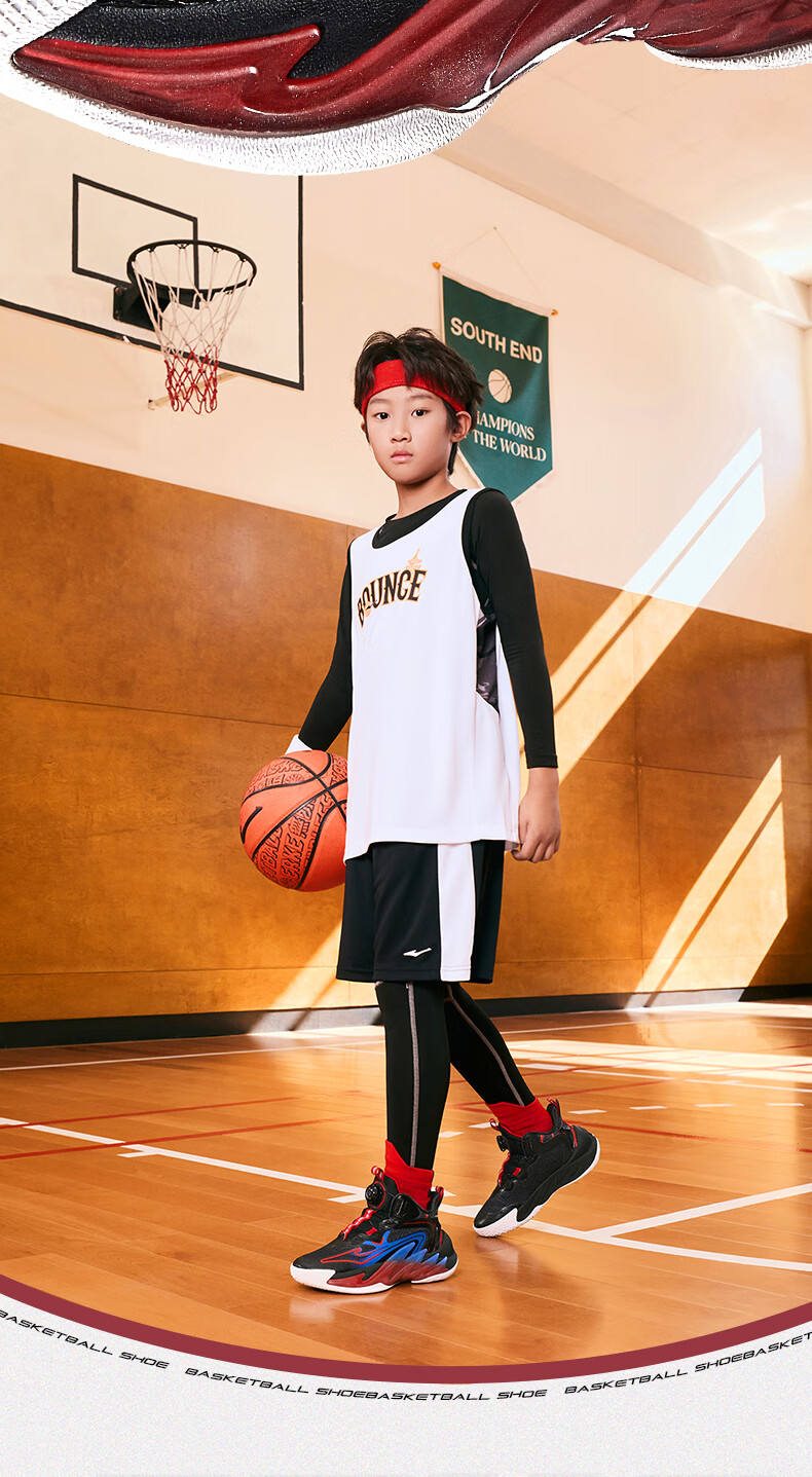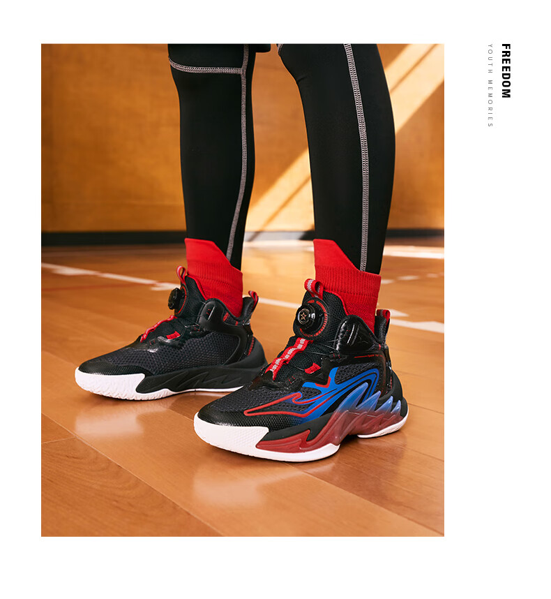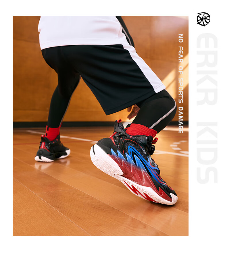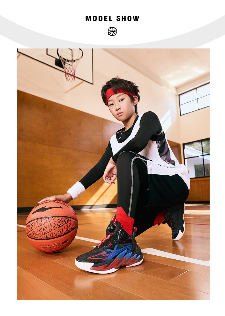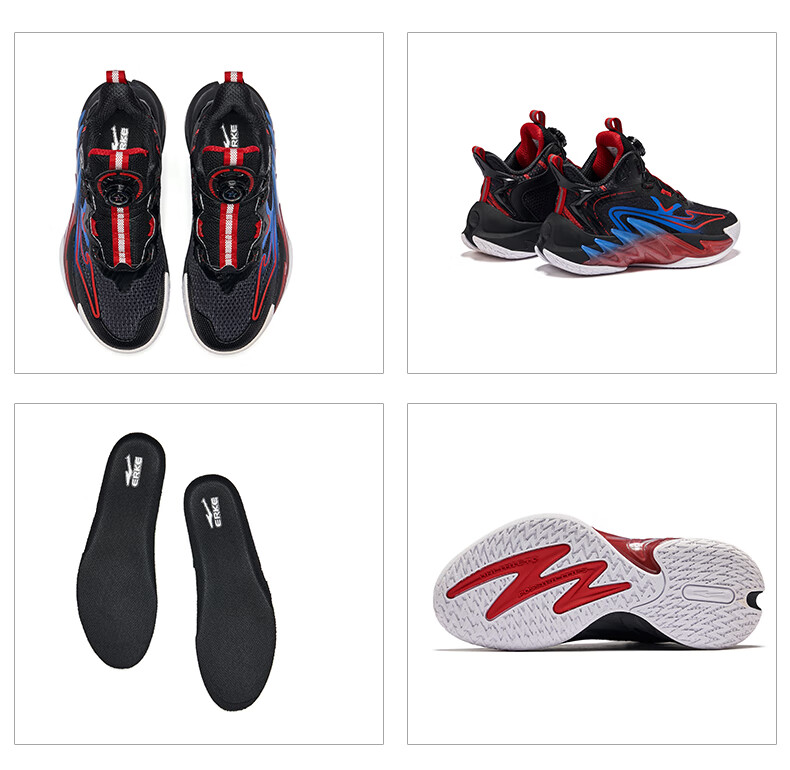 Hongxing Erke (ERKE) children's shoes, medium and large children's sneakers, children's 24 new boys' knob buckle cushioning basketball shoes, black/red red 37