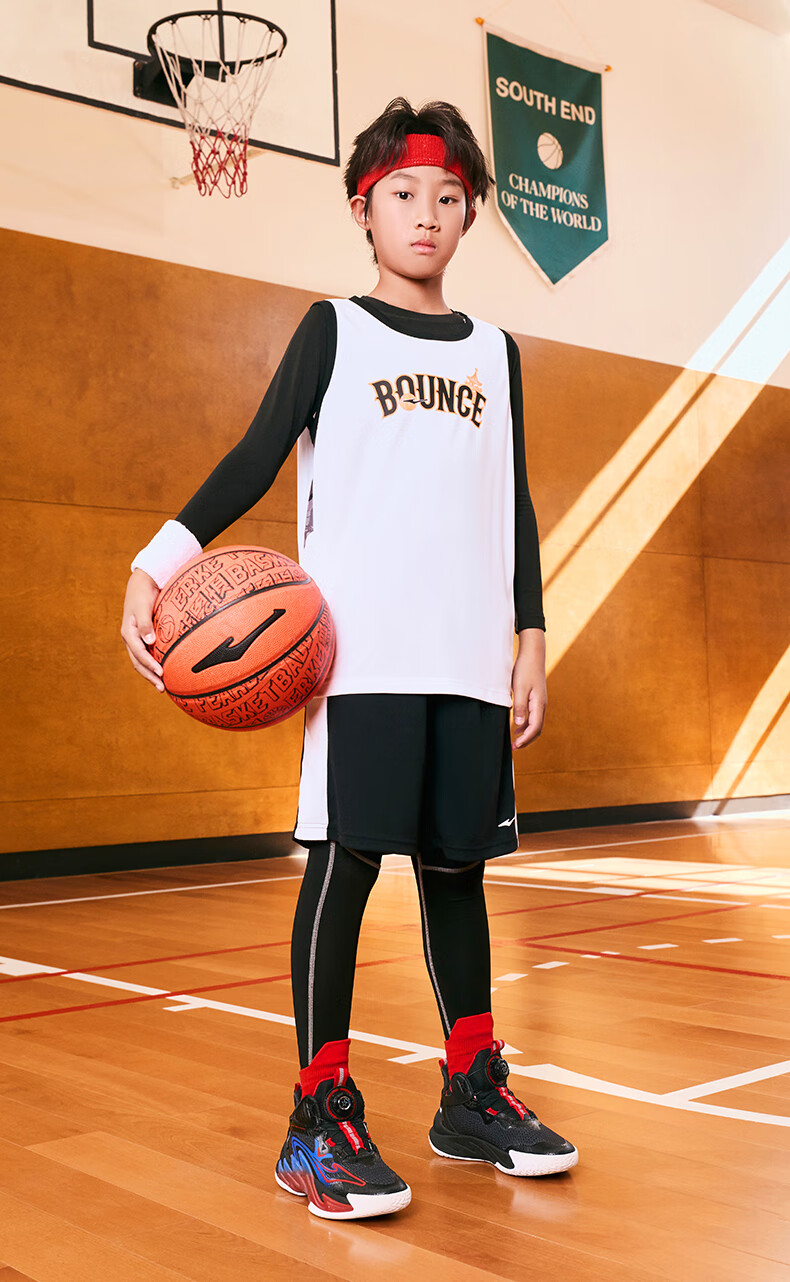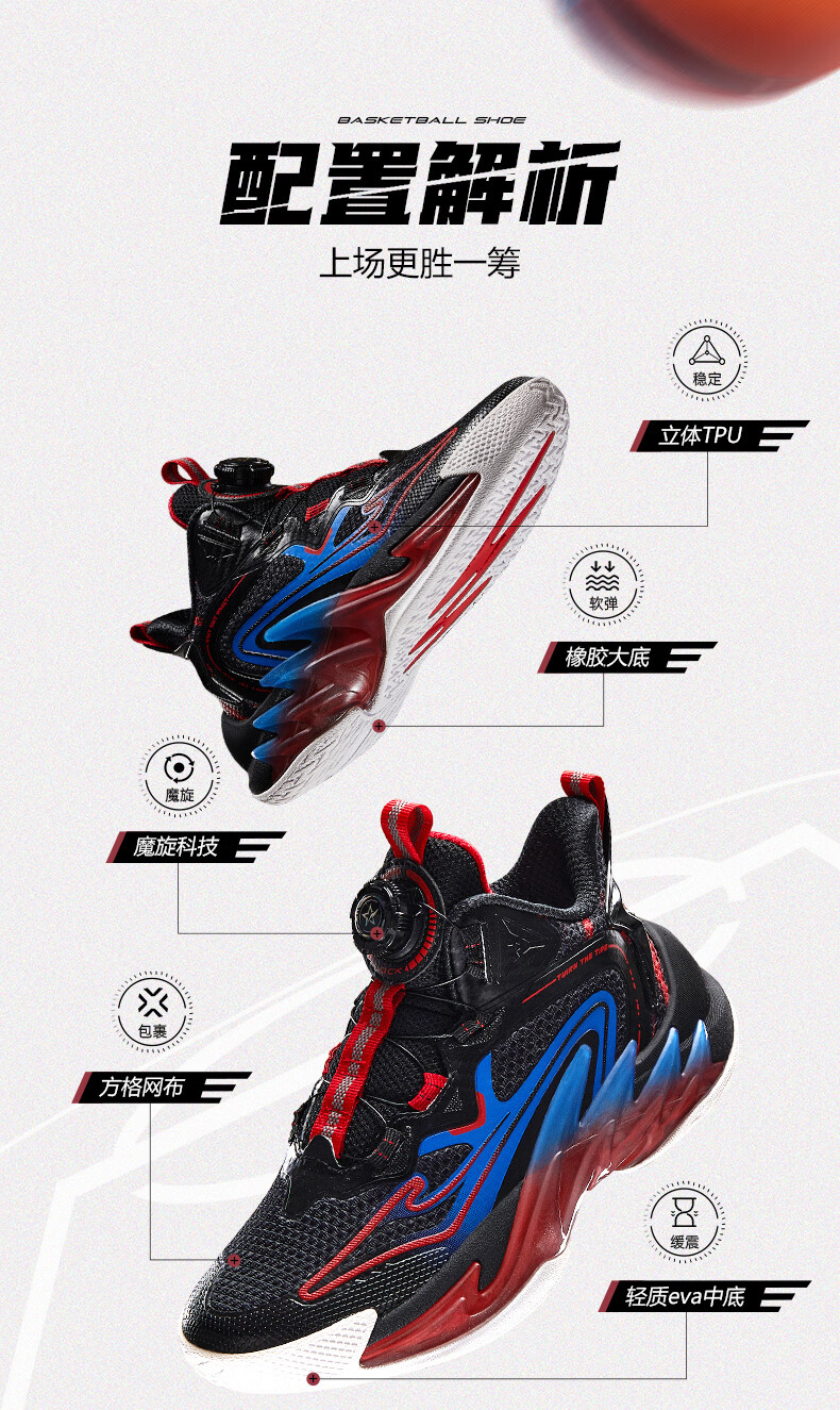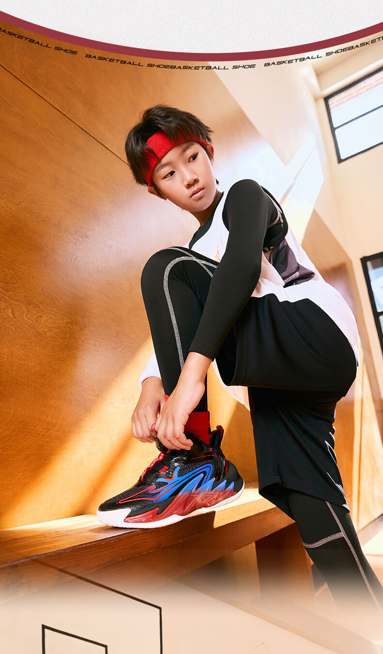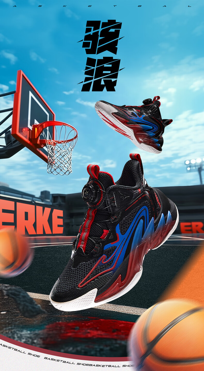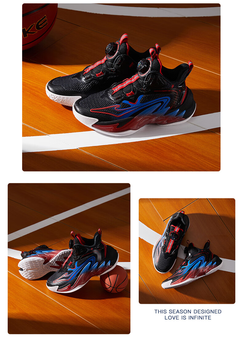 Hongxing Erke (ERKE) children's shoes, medium and large children's sneakers, children's 24 new boys' knob buckle cushioning basketball shoes, black/red red 37