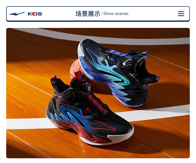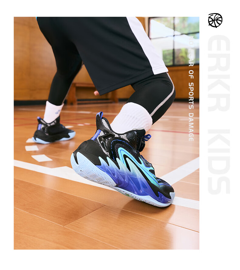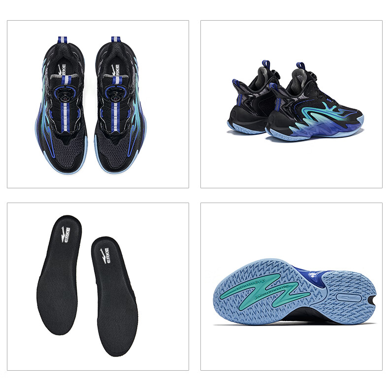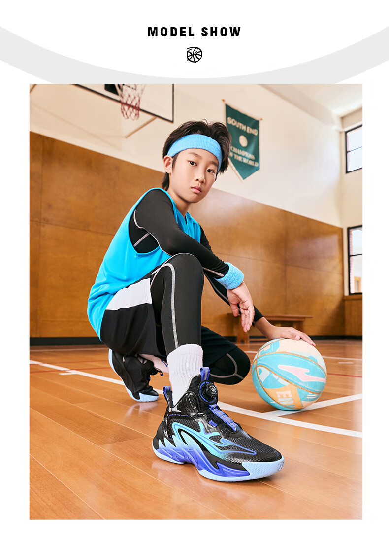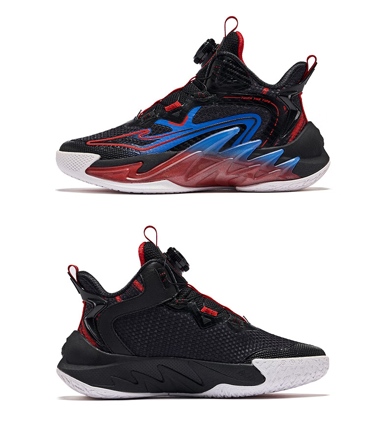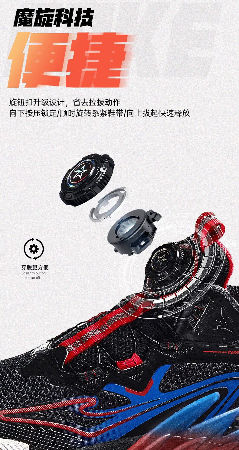 Hongxing Erke (ERKE) children's shoes, medium and large children's sneakers, children's 24 new boys' knob buckle cushioning basketball shoes, black/red red 37