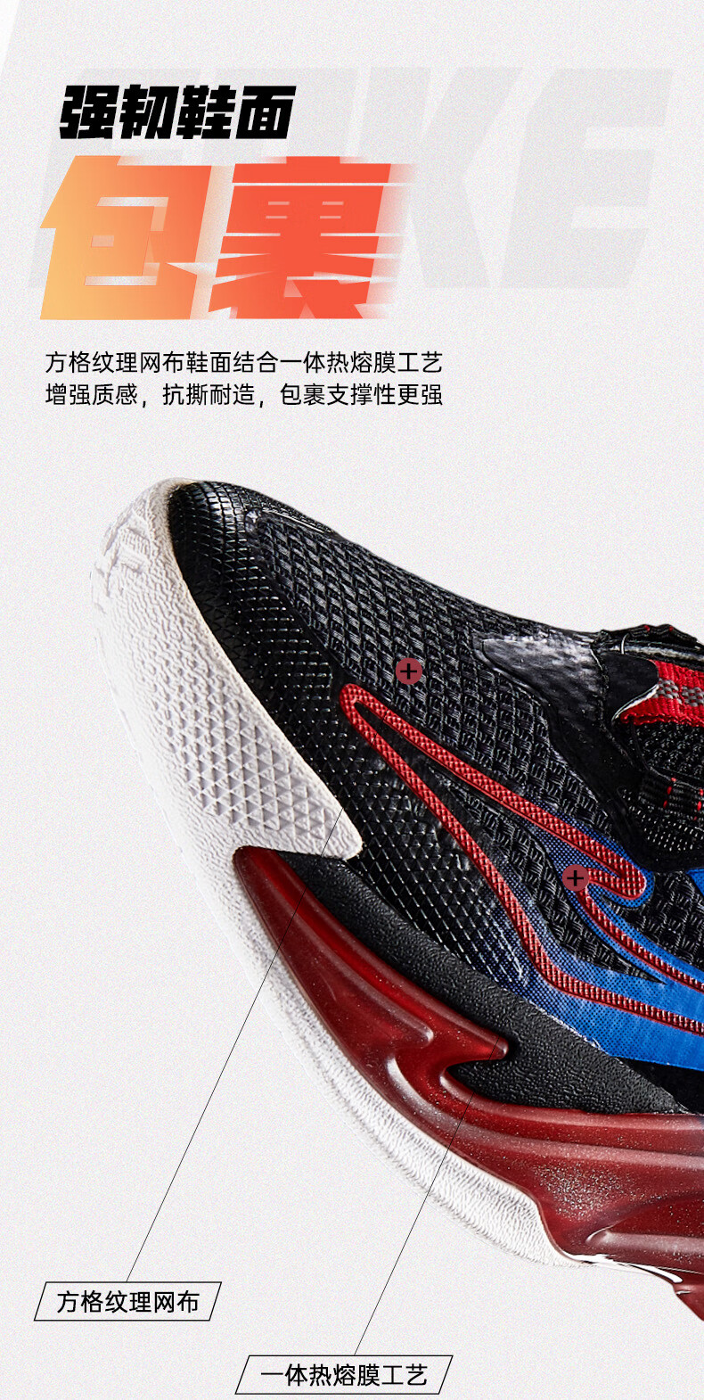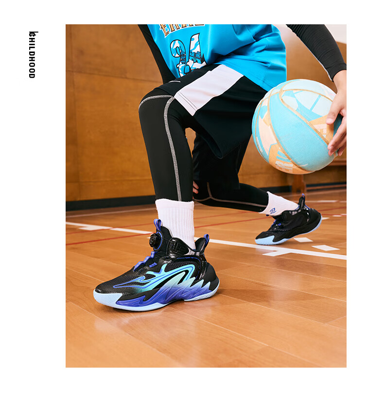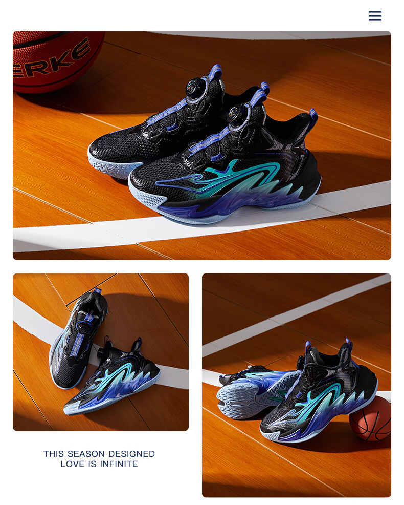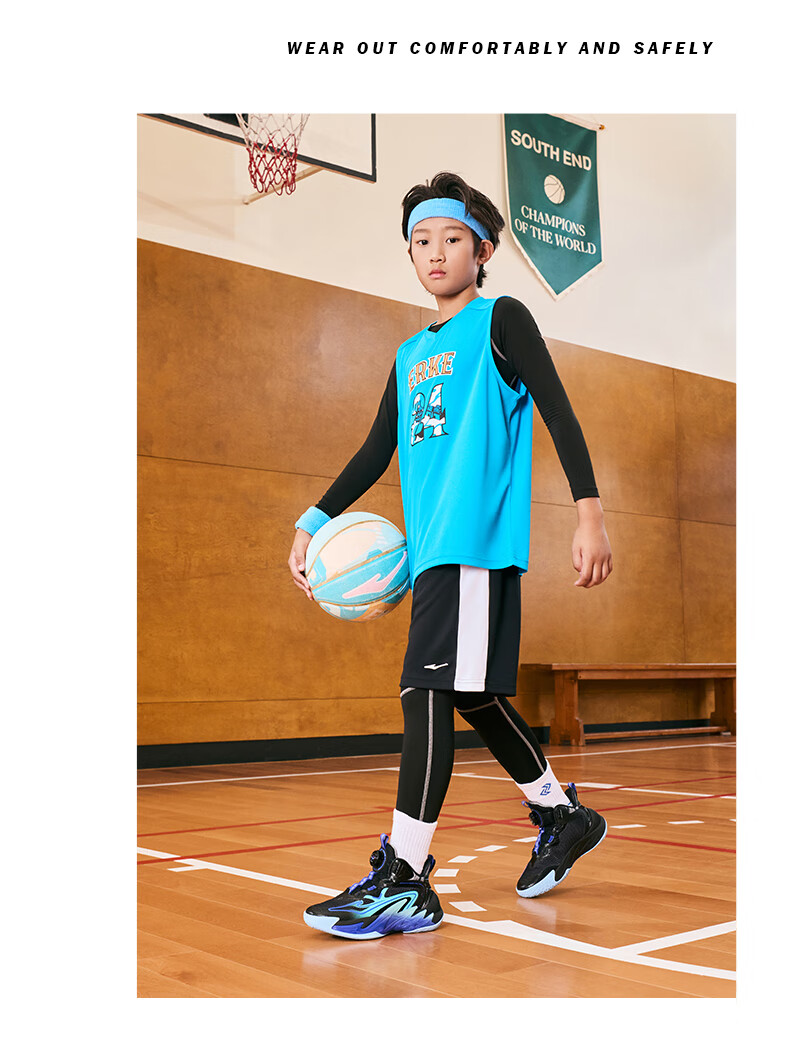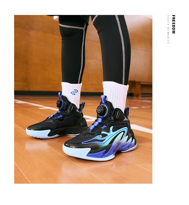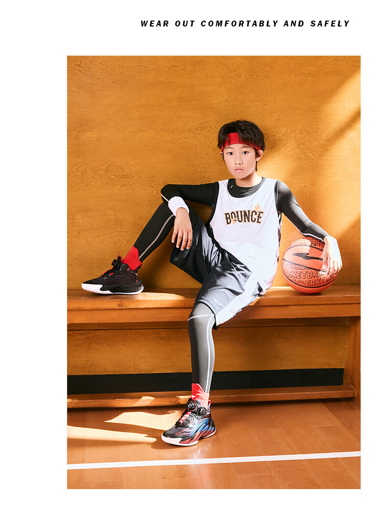 Hongxing Erke (ERKE) children's shoes, medium and large children's sneakers, children's 24 new boys' knob buckle cushioning basketball shoes, black/red red 37