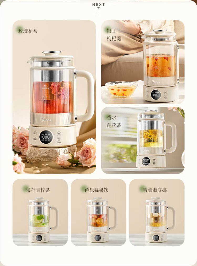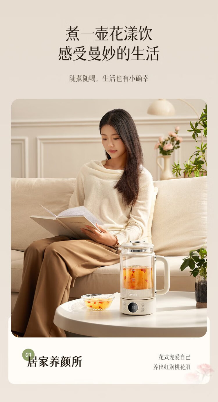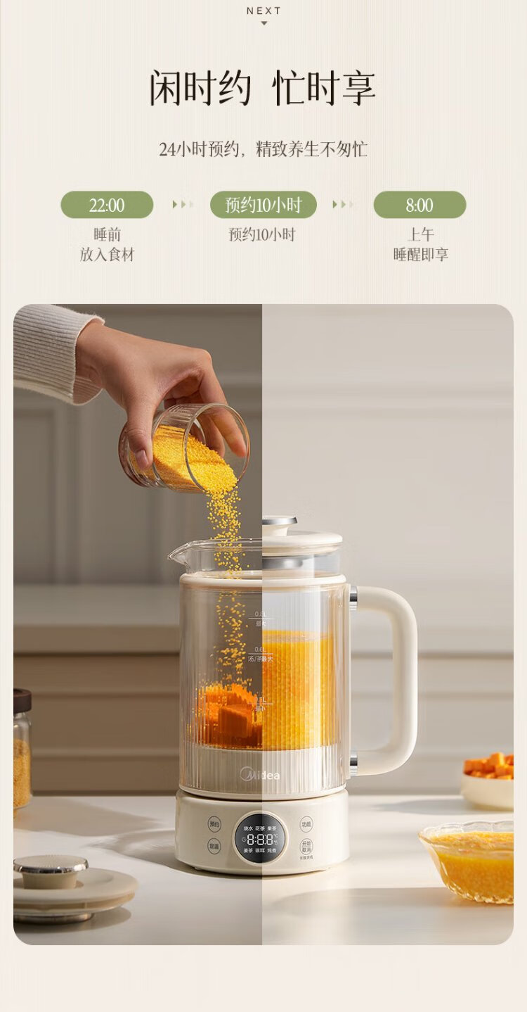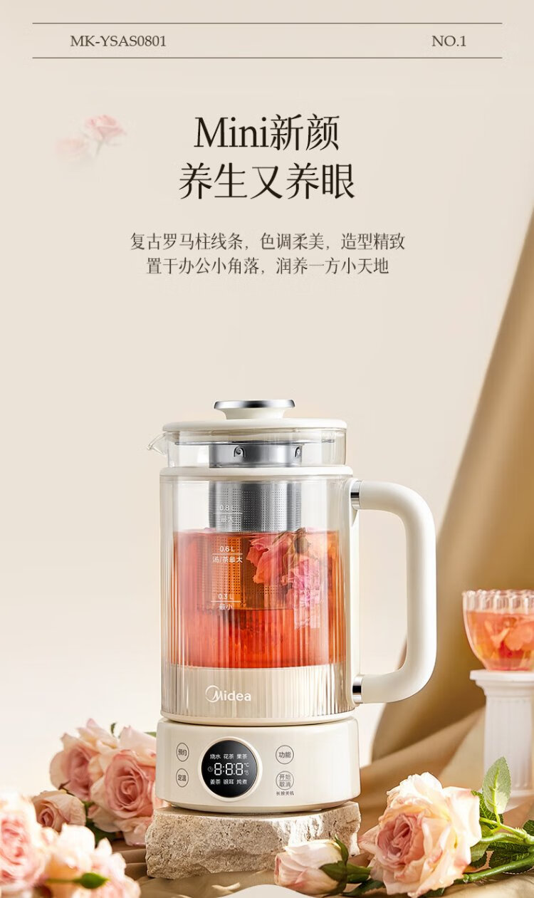 Midea health kettle, double-layered anti-scald tea kettle, 24h reservation kettle, 12-hour constant temperature electric kettle, antibacterial 316L, national subsidy YSAS0801