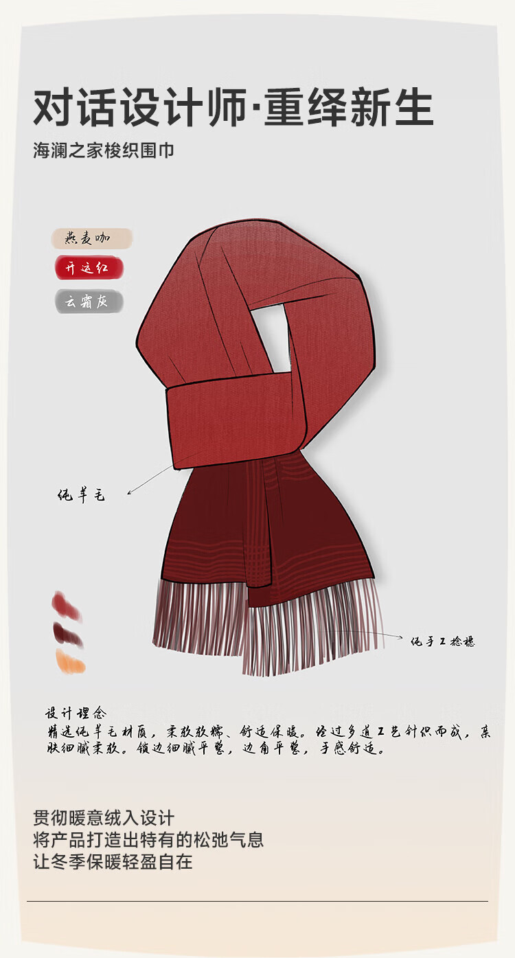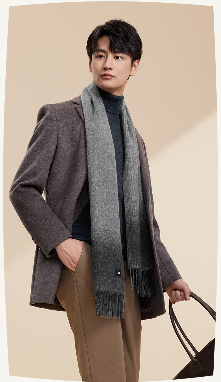 Heilan House (HLA) men's scarf pure wool autumn and winter warm thickened scarf male birthday gift gift box for boyfriend and husband