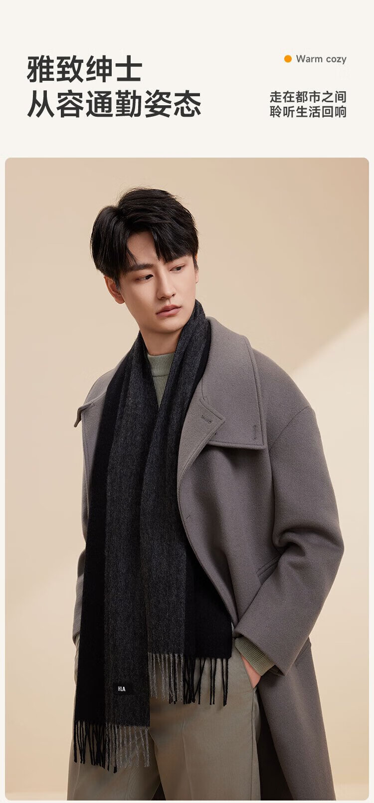 Heilan House (HLA) scarf men's pure wool neck gaiter neck gaiter autumn and winter birthday gift for boys to give to boyfriend to father