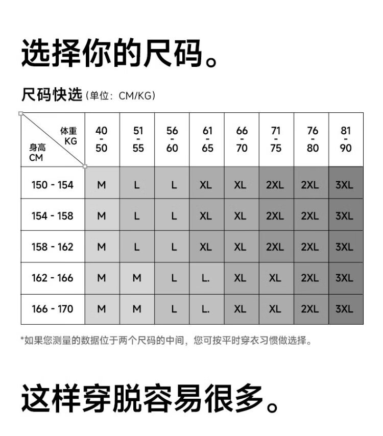 China (cm) 160-165/84-86 165-170 / 88-90 167-172 / 92-96 168-173 / 98-102 170-176 / 106-110