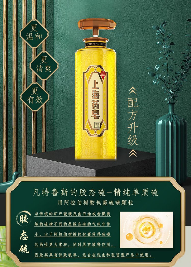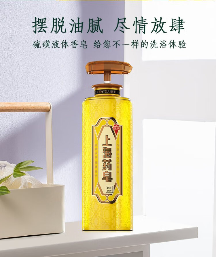 Shanghai Medicated Soap Sulfur Liquid Soap 620g three-in-one anti-acne, anti-bacterial, oil-control shampoo, face wash, and shower