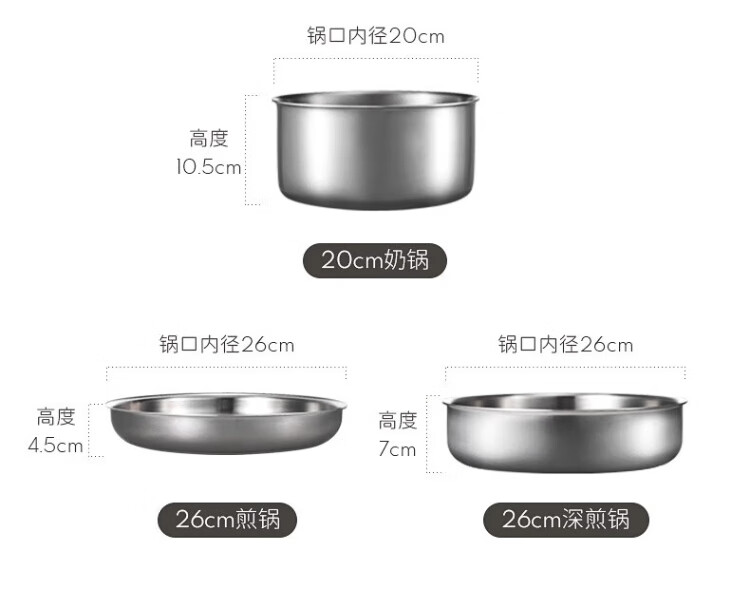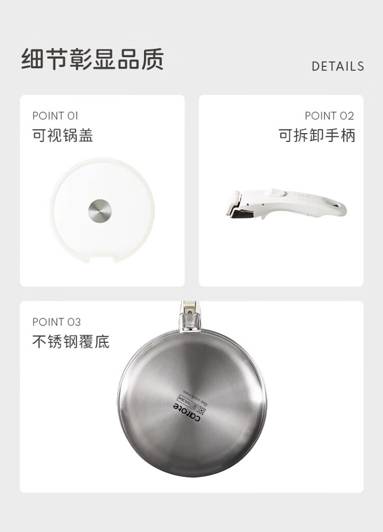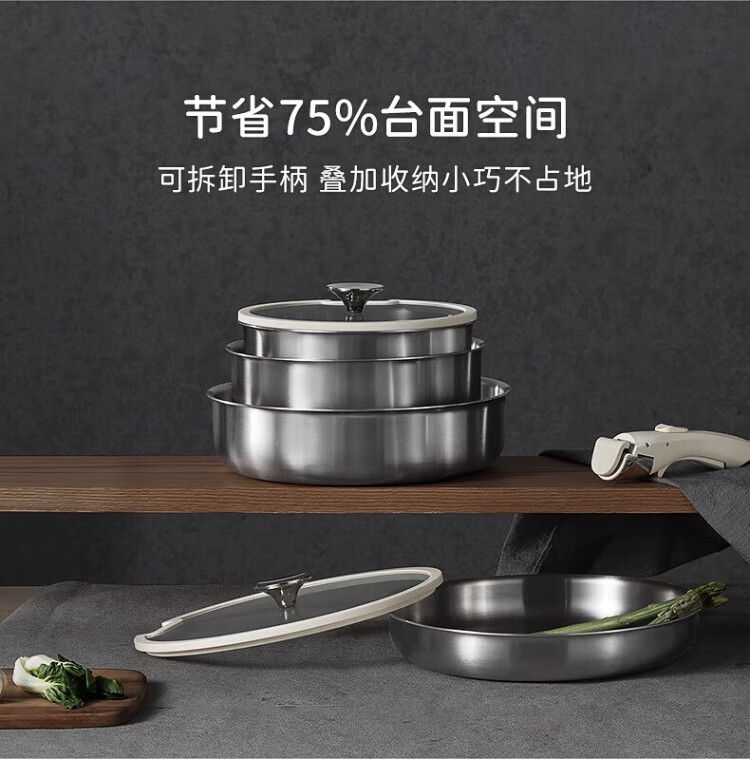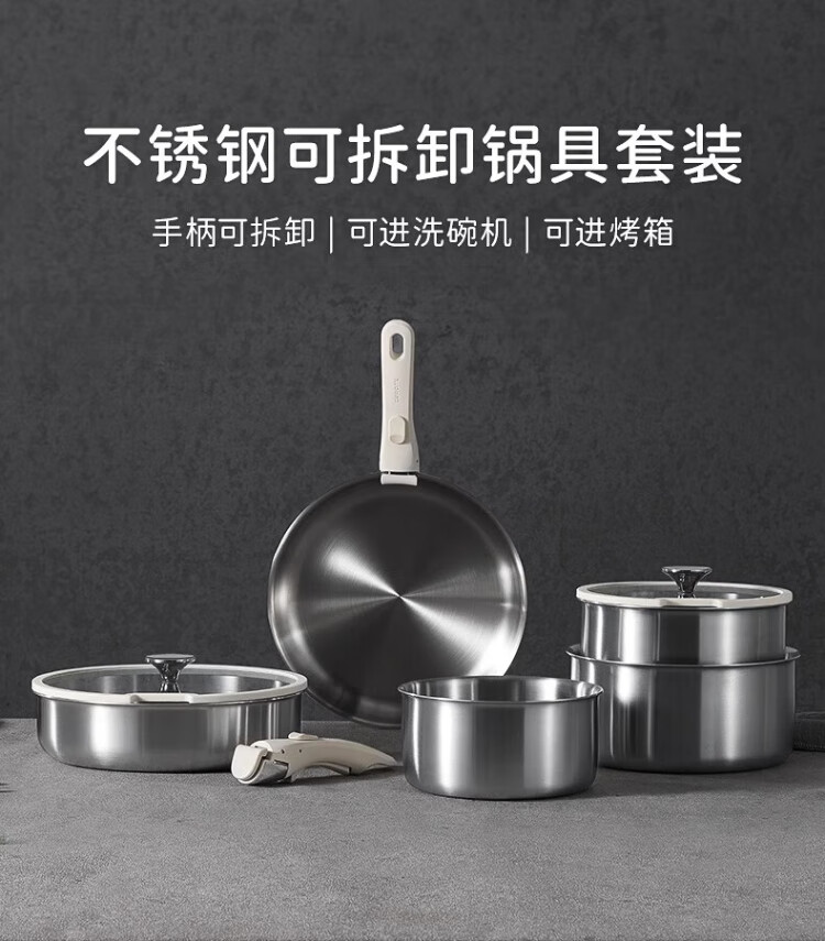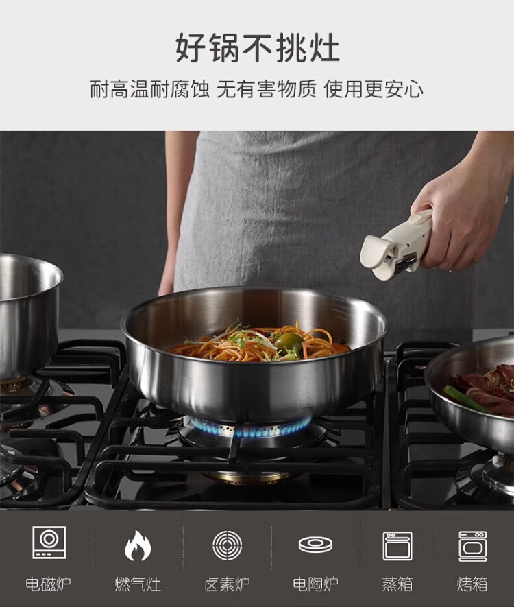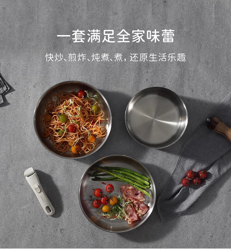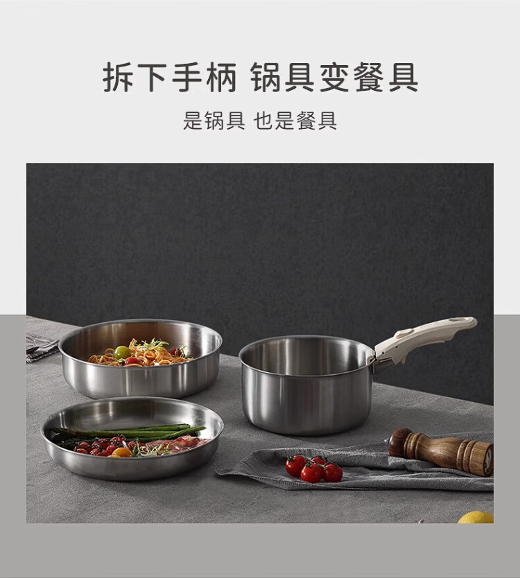 CaROTE stainless steel pot removable handle pot kitchen utensils frying pan non-stick pot uncoated kitchen pot set three-piece stacking pot full set for home use
