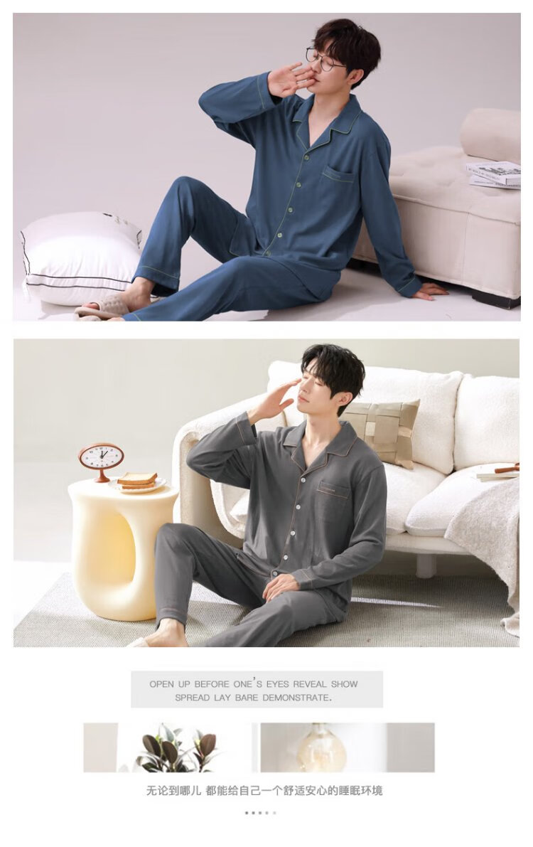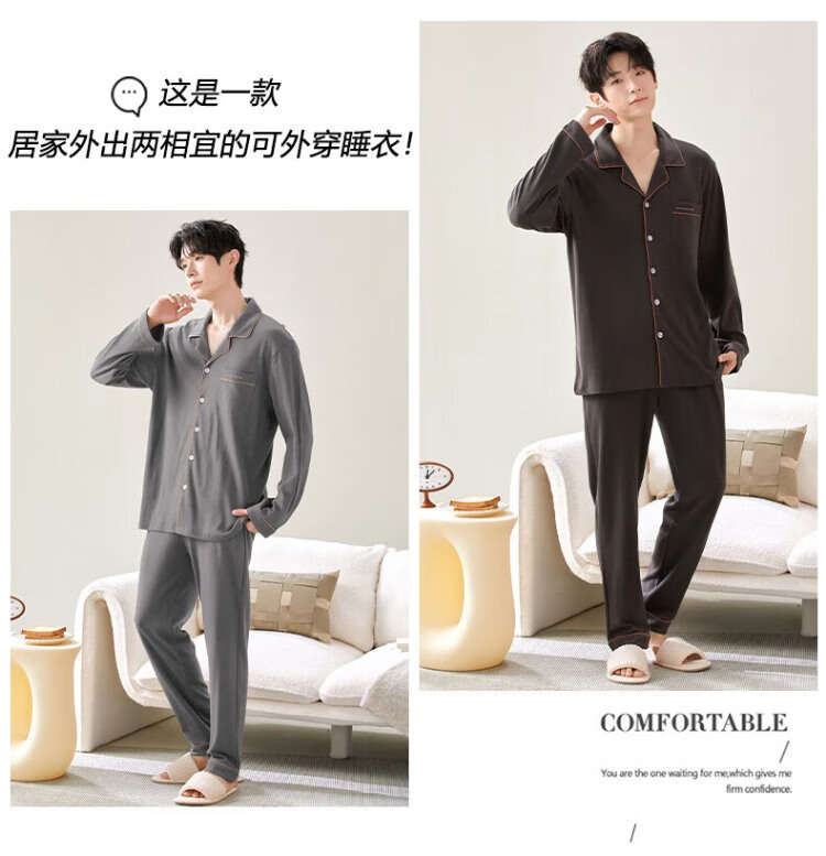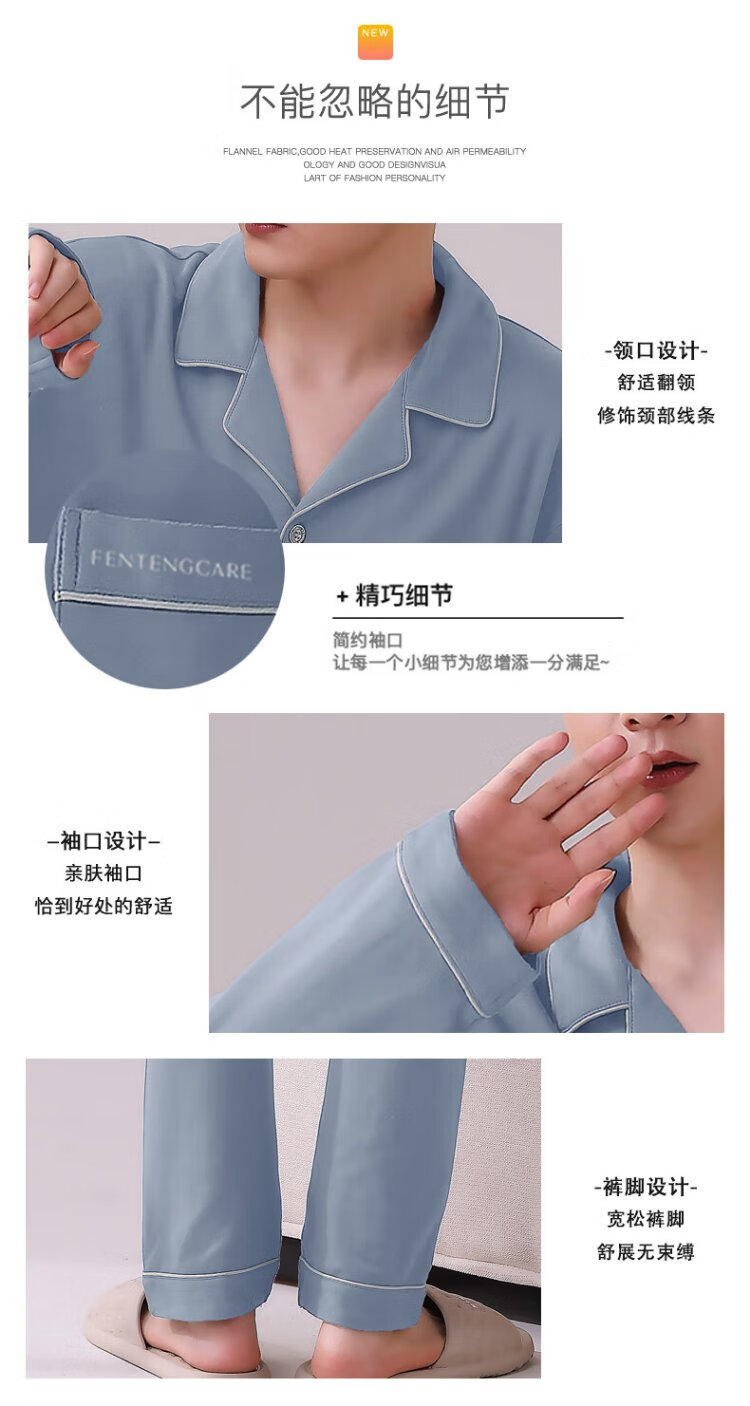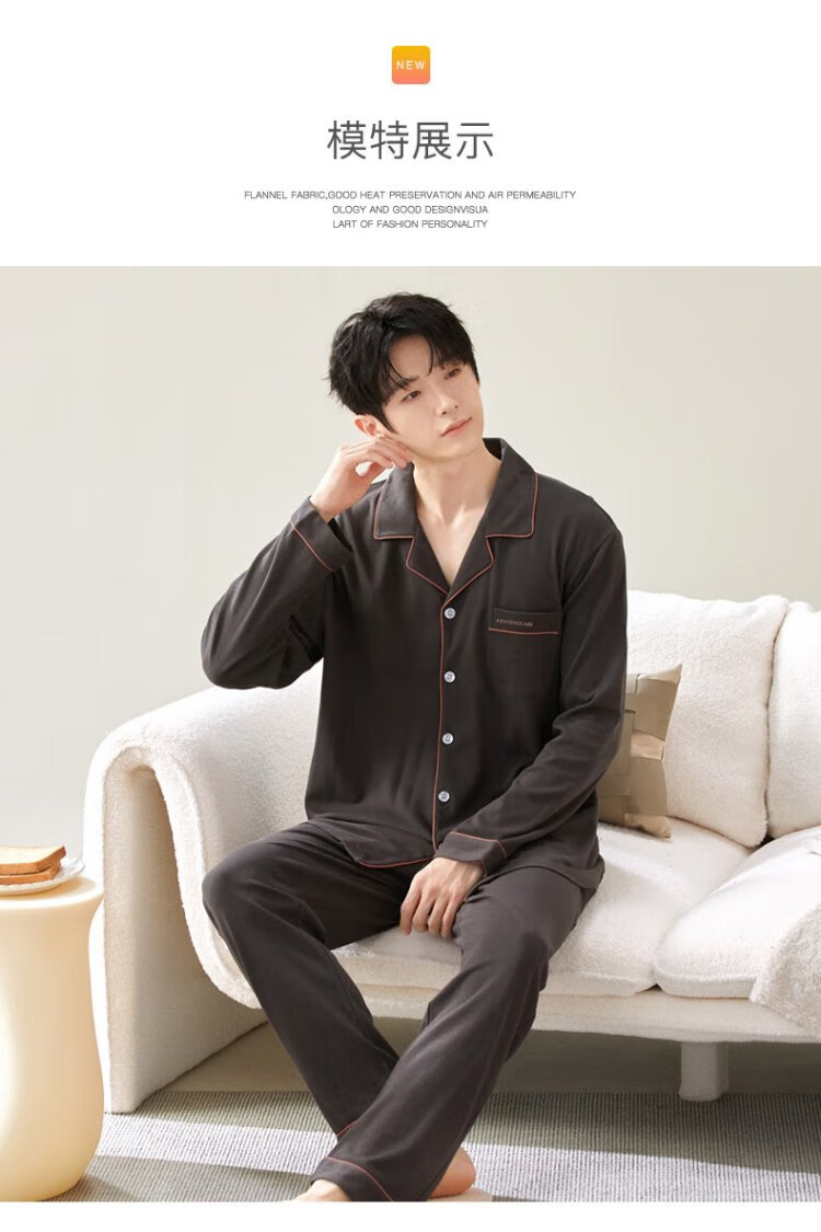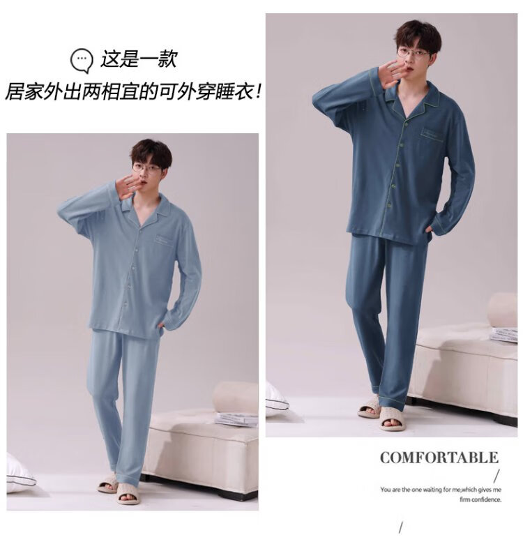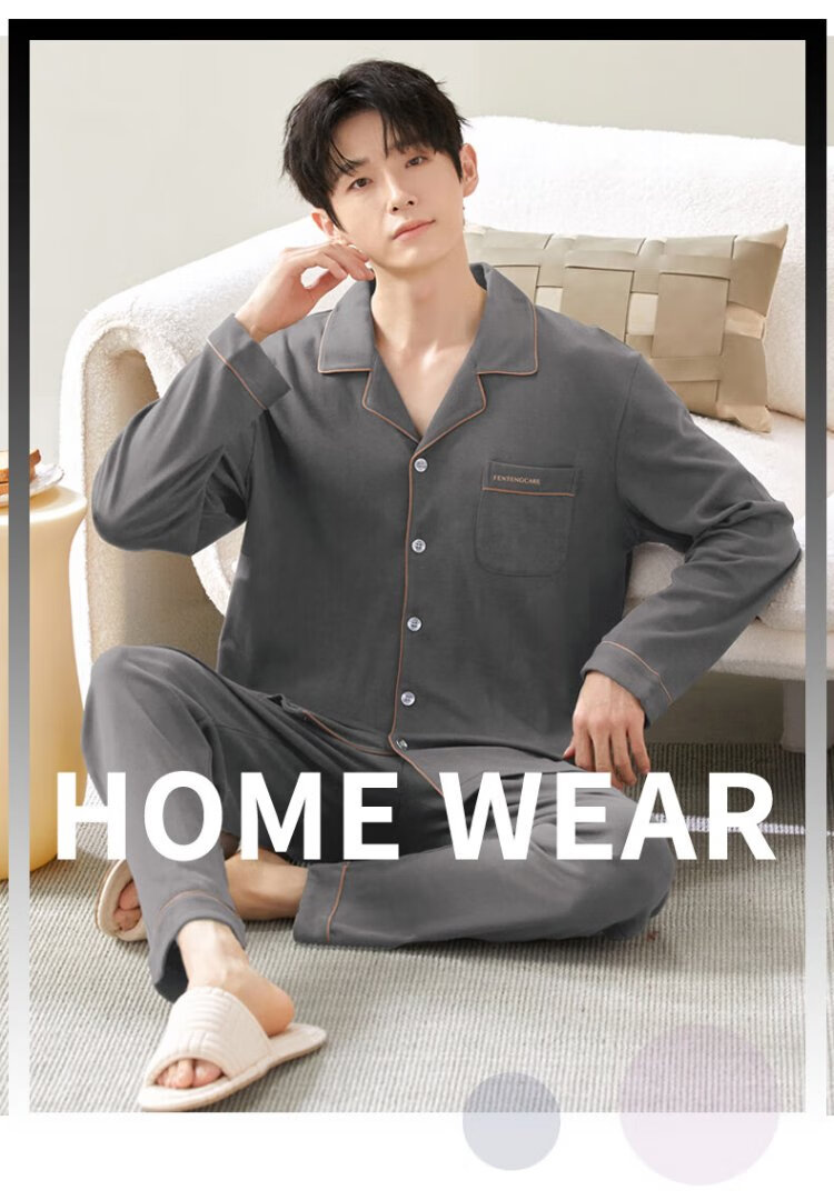 FENTENGCARE pajamas men's pure cotton spring and autumn long-sleeved trousers cardigan lapel two-piece set home wear casual can be worn outside QH