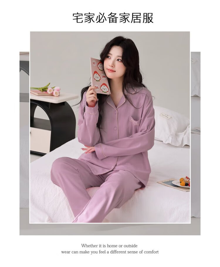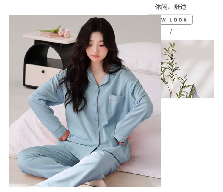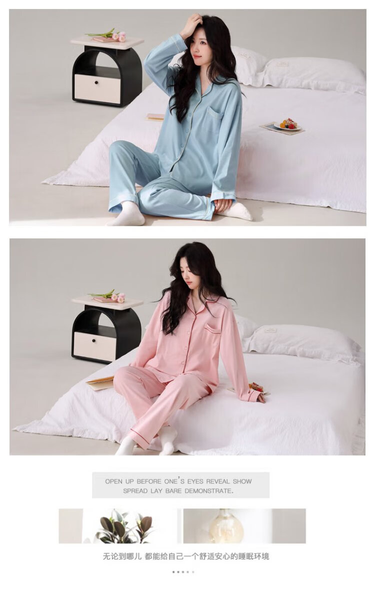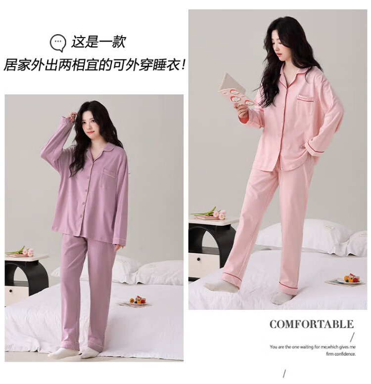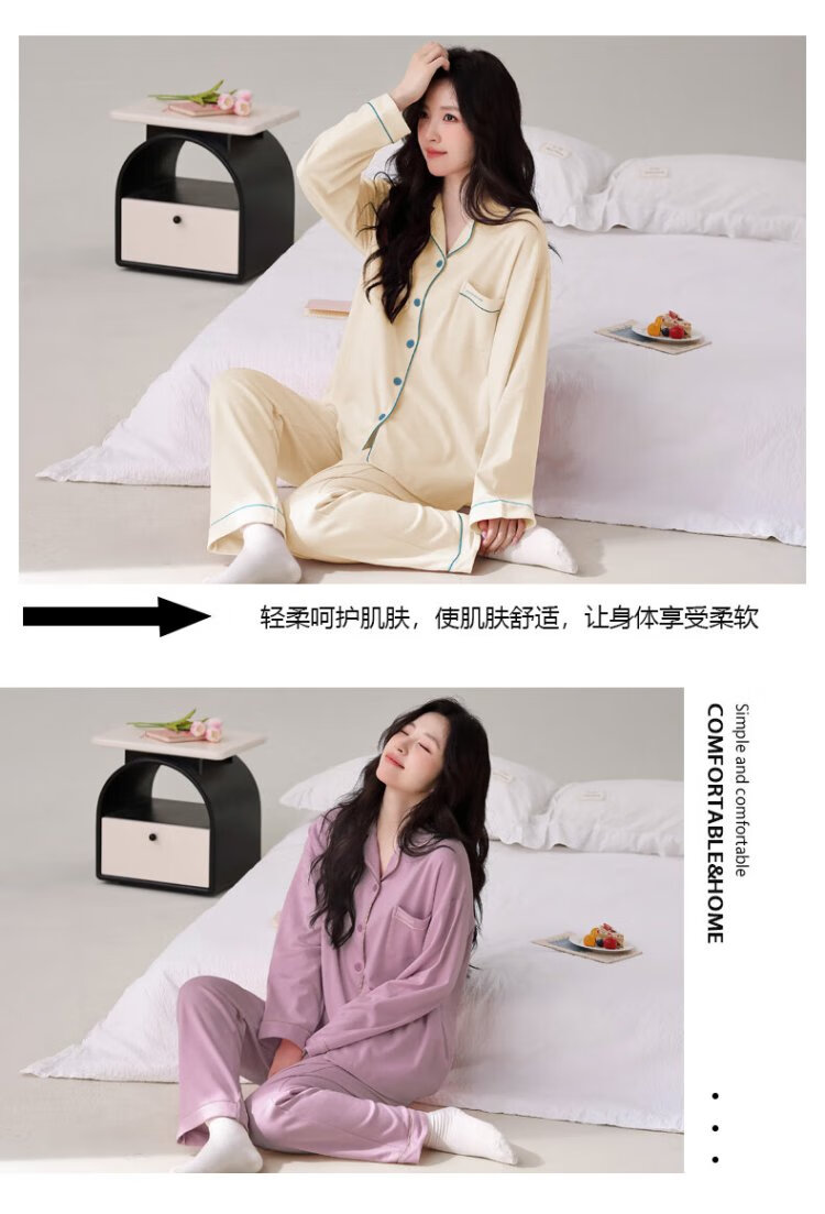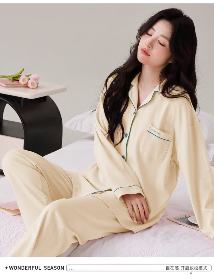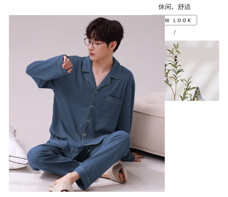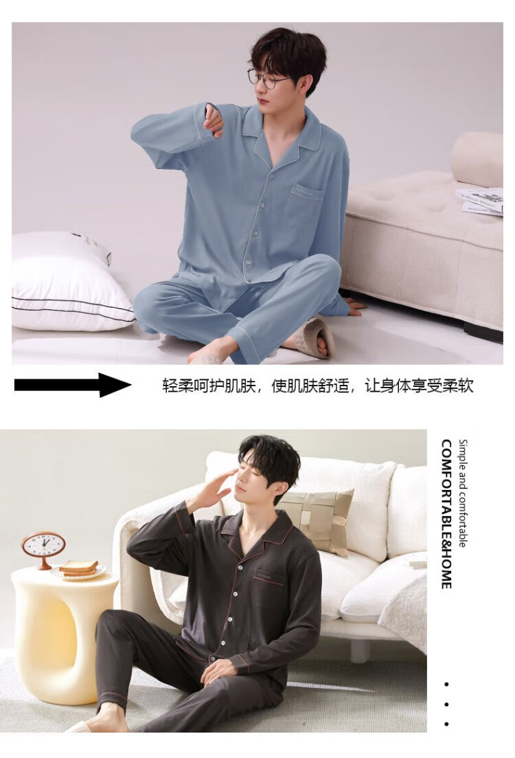 FENTENGCARE pajamas men's pure cotton spring and autumn long-sleeved trousers cardigan lapel two-piece set home wear casual can be worn outside QH