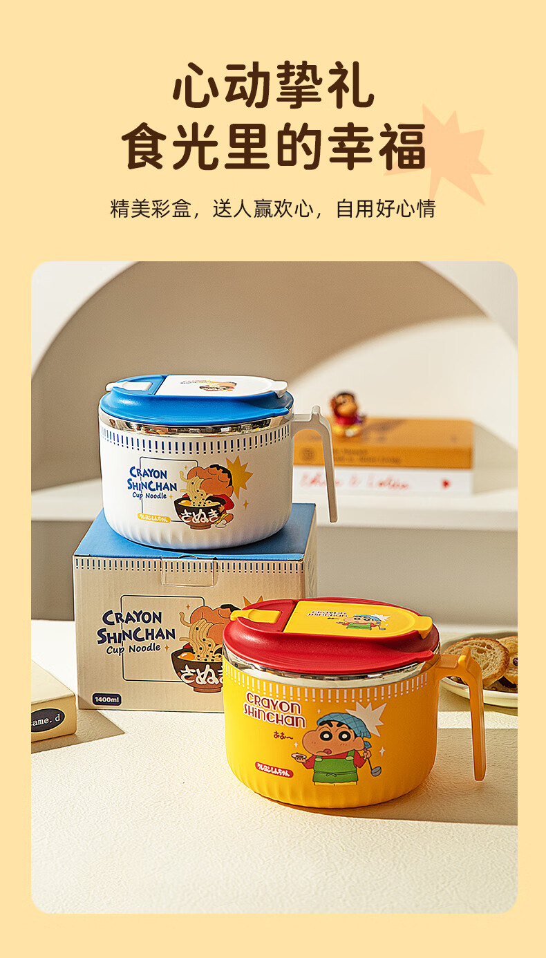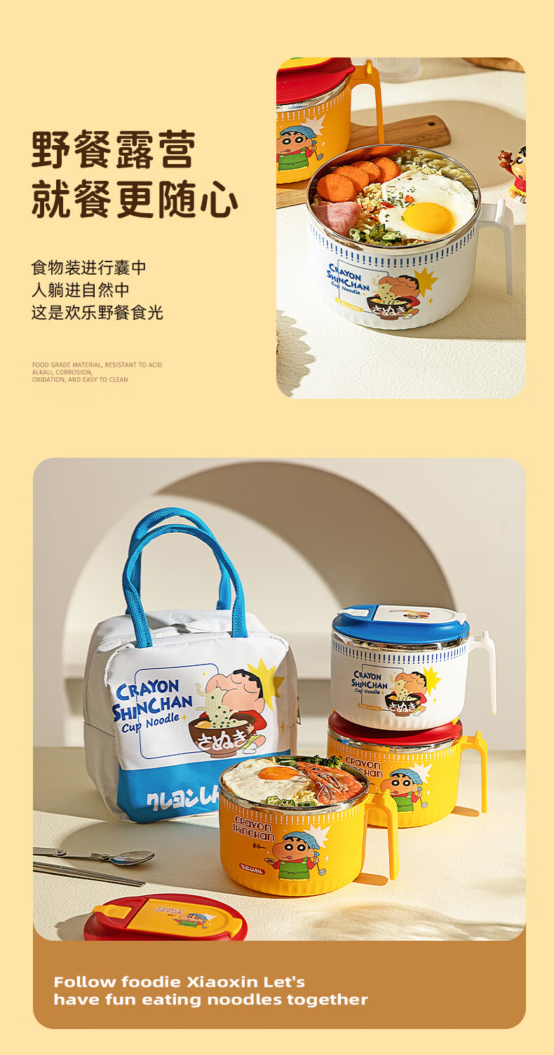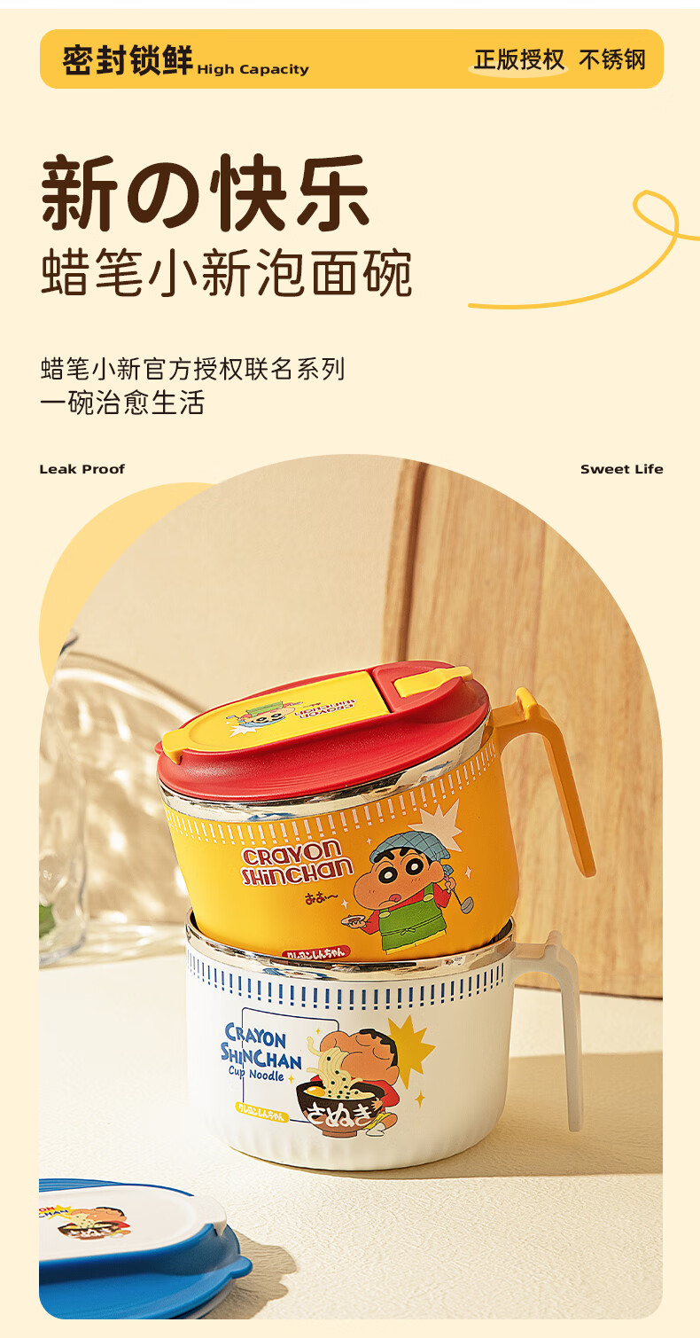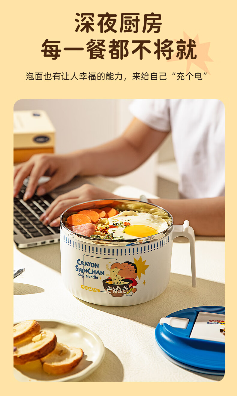 Modern Housewife Crayon Shin-chan Instant Noodle Bowl Stainless Steel Bowl Dormitory Students Special Lunch Box Soup Bowl with Cover
