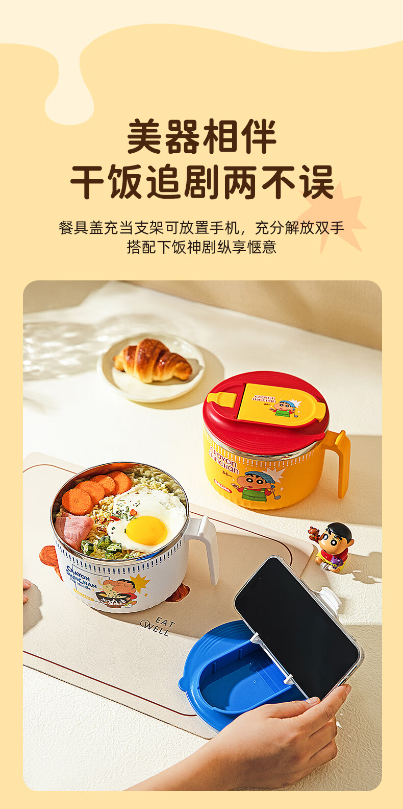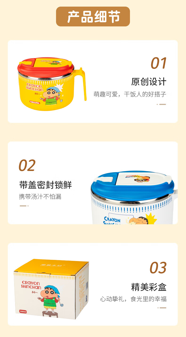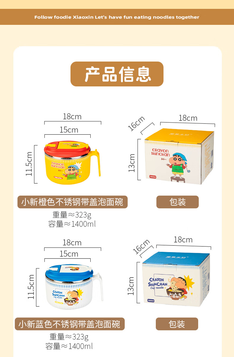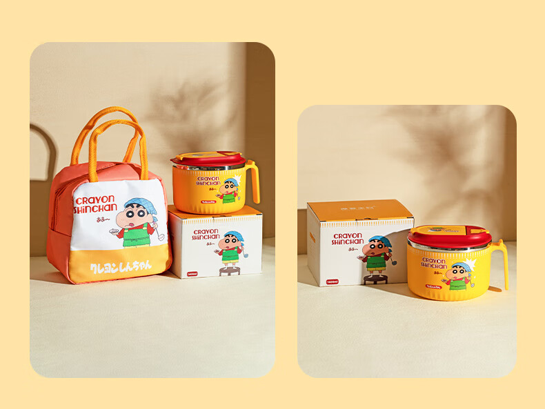 Modern Housewife Crayon Shin-chan Instant Noodle Bowl Stainless Steel Bowl Dormitory Students Special Lunch Box Soup Bowl with Cover