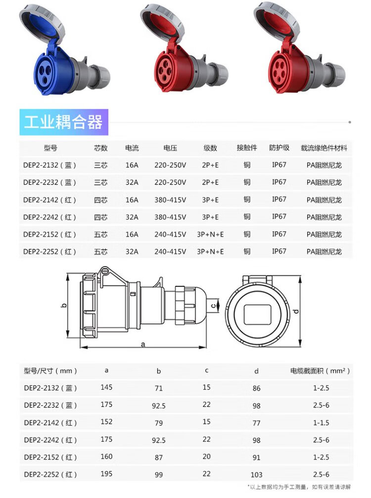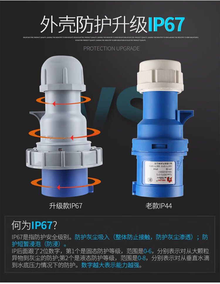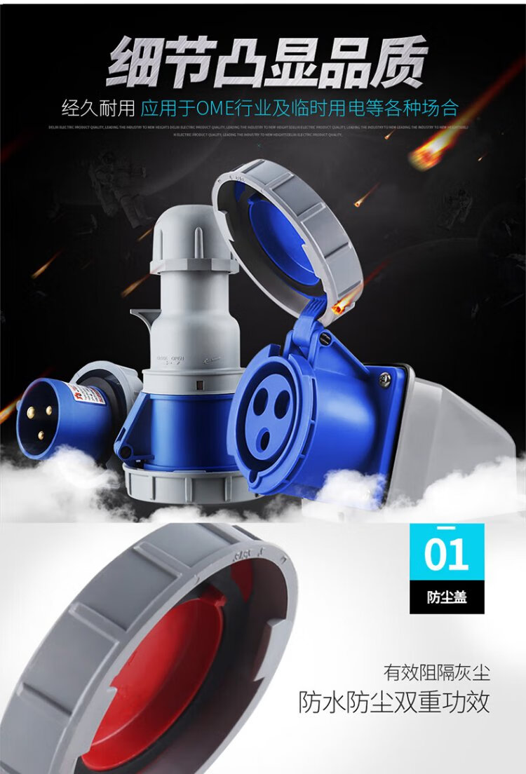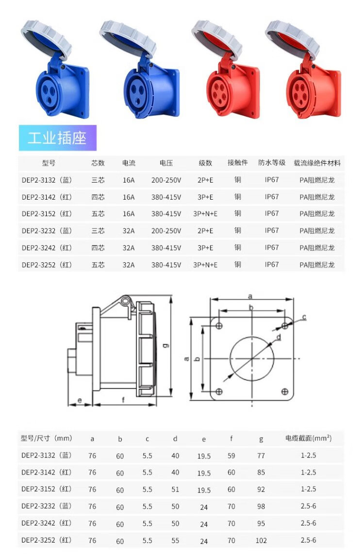 DELIXI ELECTRIC aviation plug and socket coupler connector DEP2-1252 IP67 32A 5-core 415V industrial exposed socket