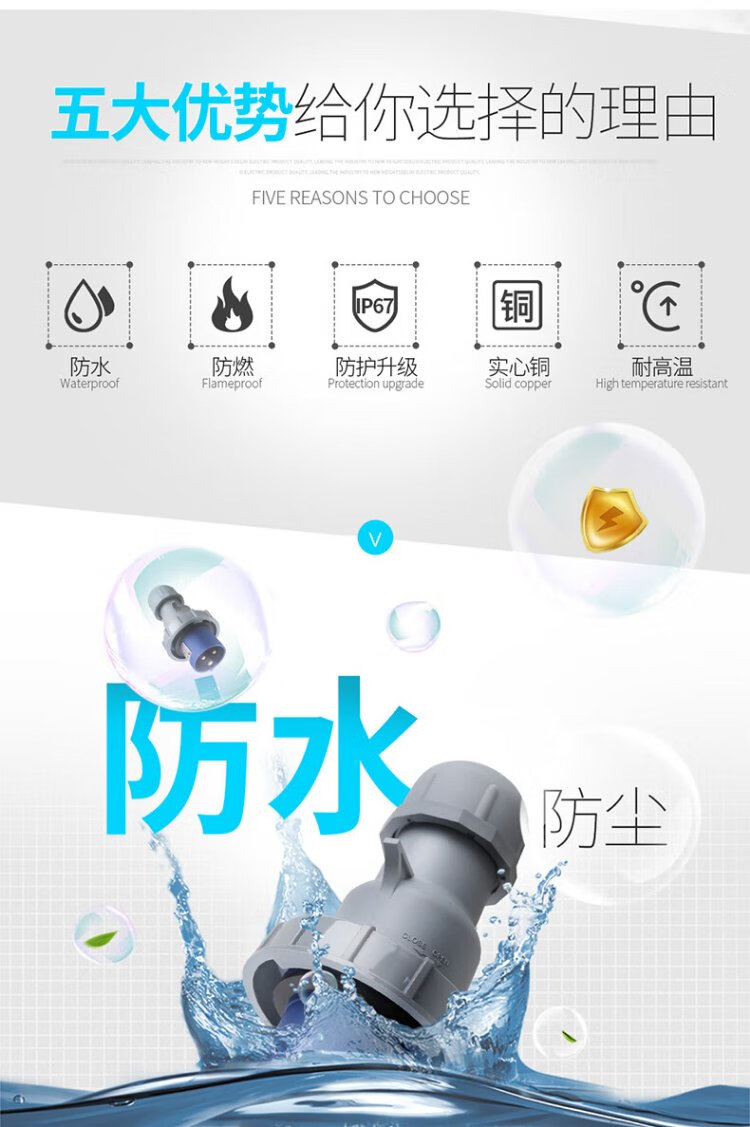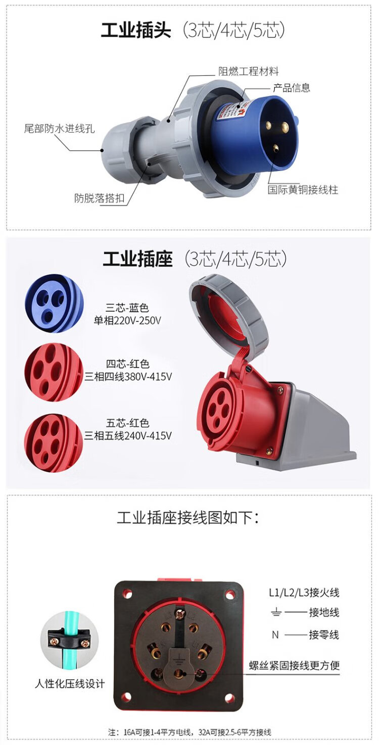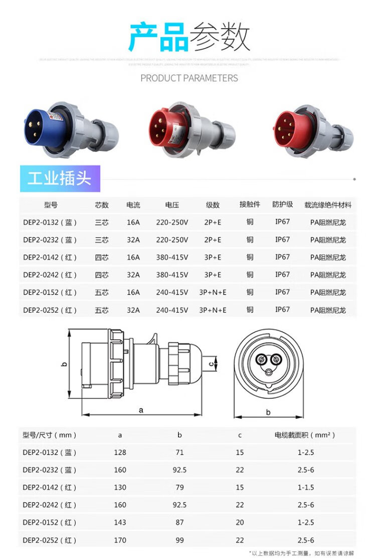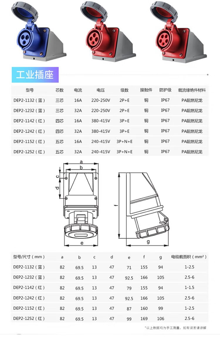 DELIXI ELECTRIC aviation plug and socket coupler connector DEP2-1252 IP67 32A 5-core 415V industrial exposed socket