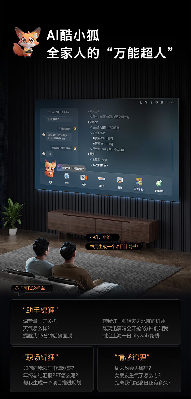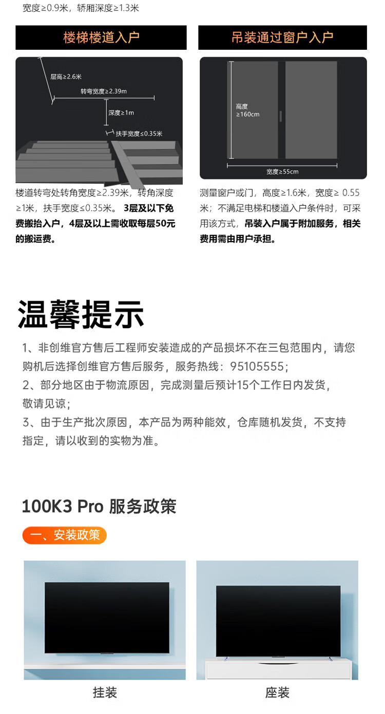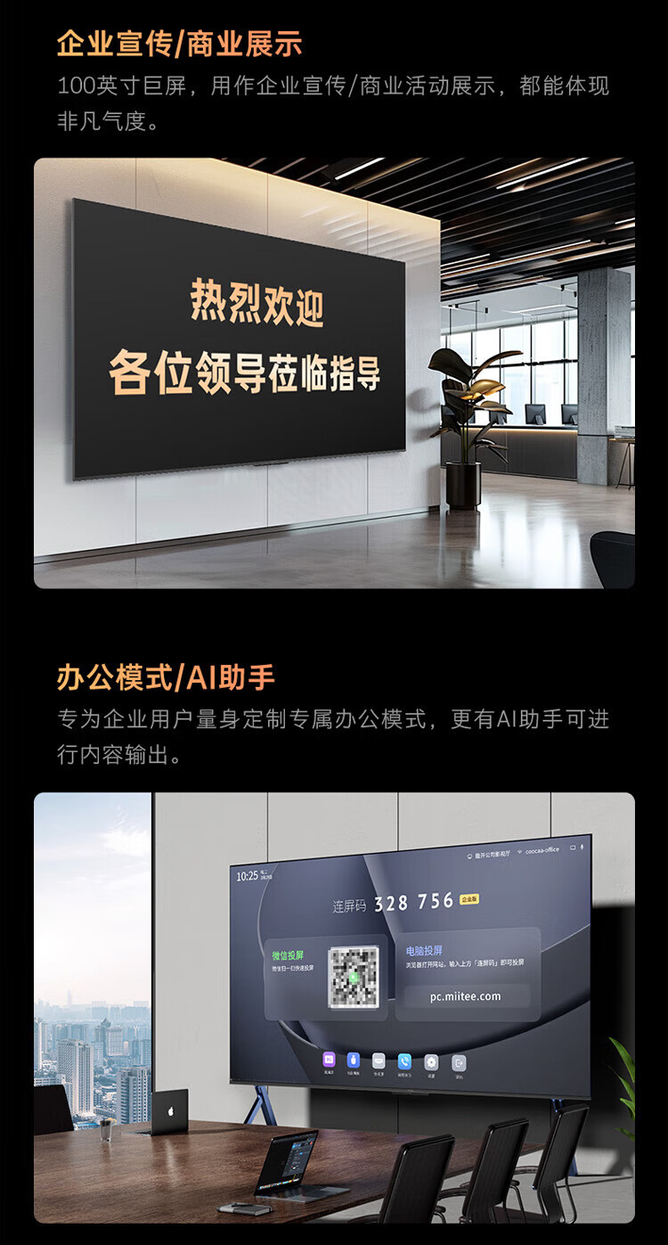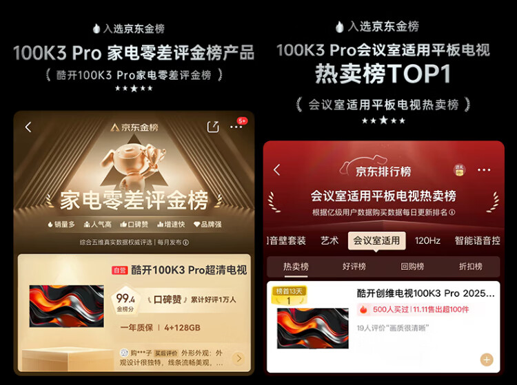 Kuchuangchuangwei 100K3 Pro 100-inch conference TV, zero negative review gold list, 288Hz 4+128G, first-class energy efficiency, national subsidy ratio 98, larger TV 100P3E Max