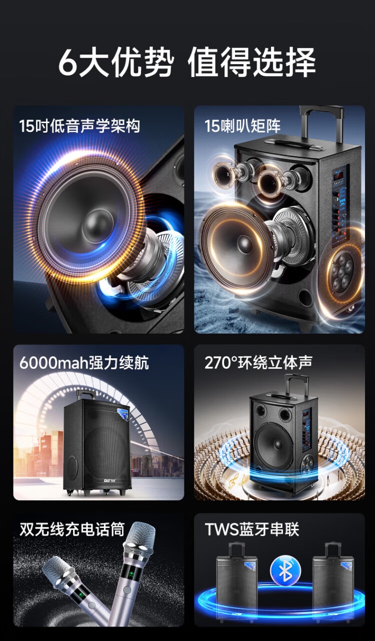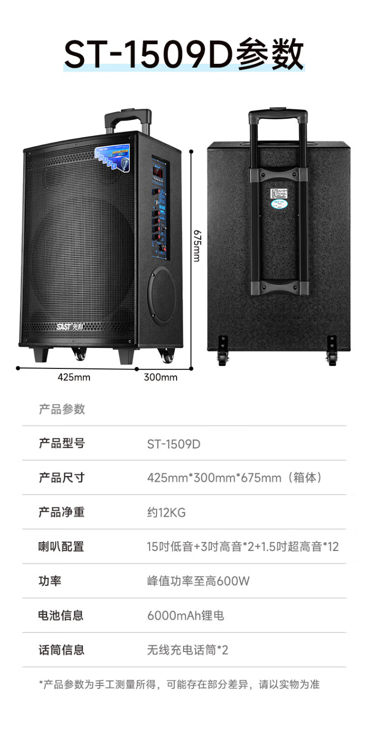 Xianke high-power outdoor audio ultra-large volume trolley speaker for outdoor activities square dance with microphone ST-1509D
