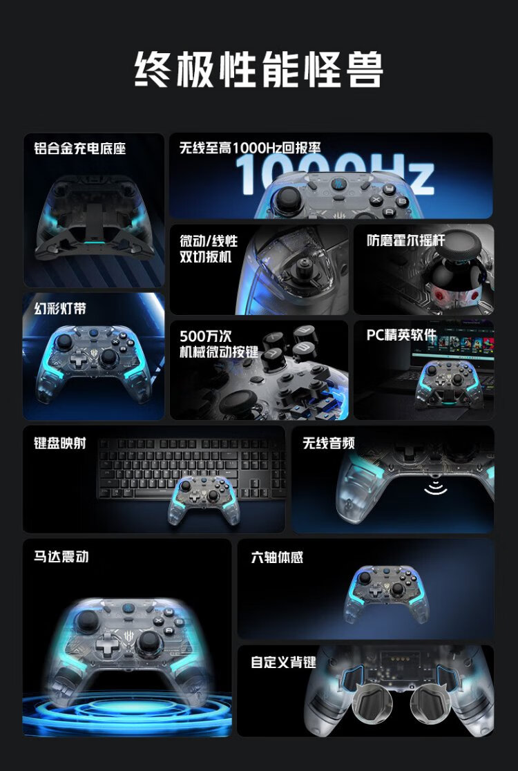 Nubia Red Magic Deuterium Edge Magic Blade Controller Wireless Game Controller Mobile Android Apple PC Bluetooth Computer TV Steam Zero Black Myth Wukong Double Shadow Wonderland RGB Semi-transparent