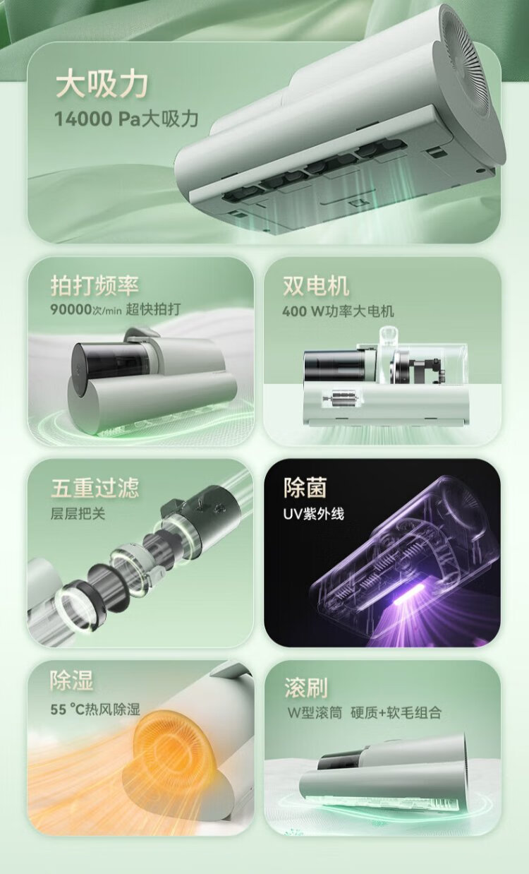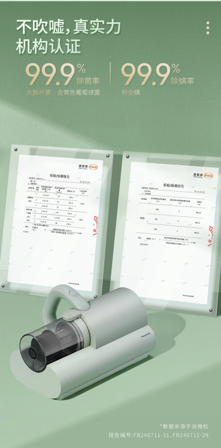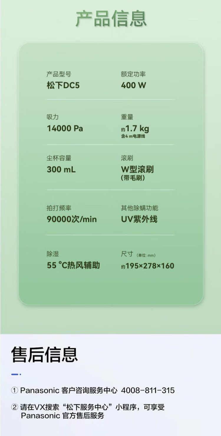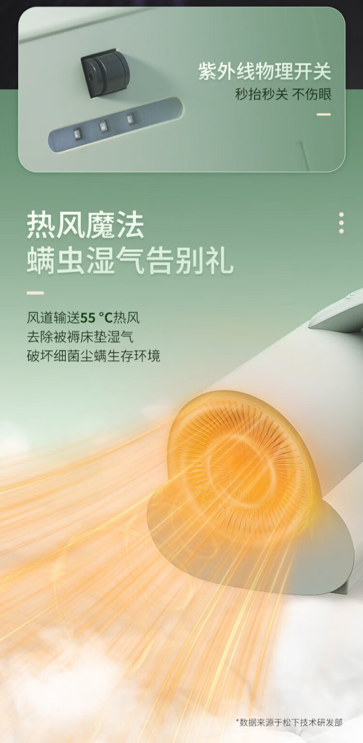 Panasonic (Panasonic) National Subsidy Mite Remover Bed Baby Cat and Dog Hair Suction and Mite Removal Ultraviolet Sterilization and Dehumidification Dual Motors Small Size Large Suction Group Purchase Gift MC-DC5G