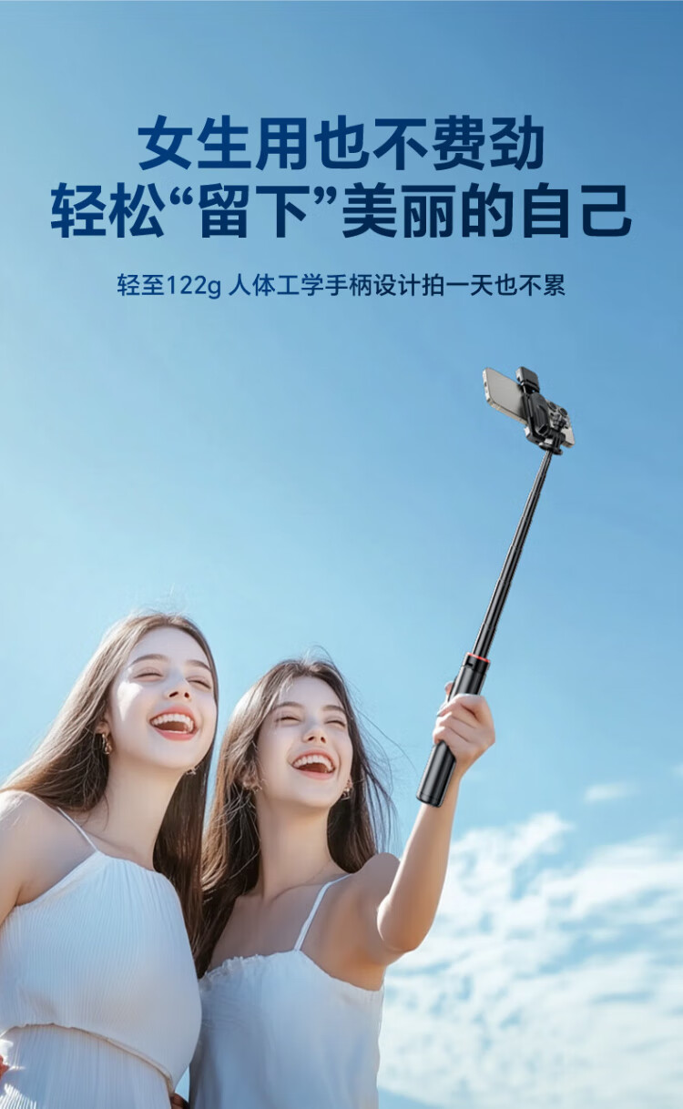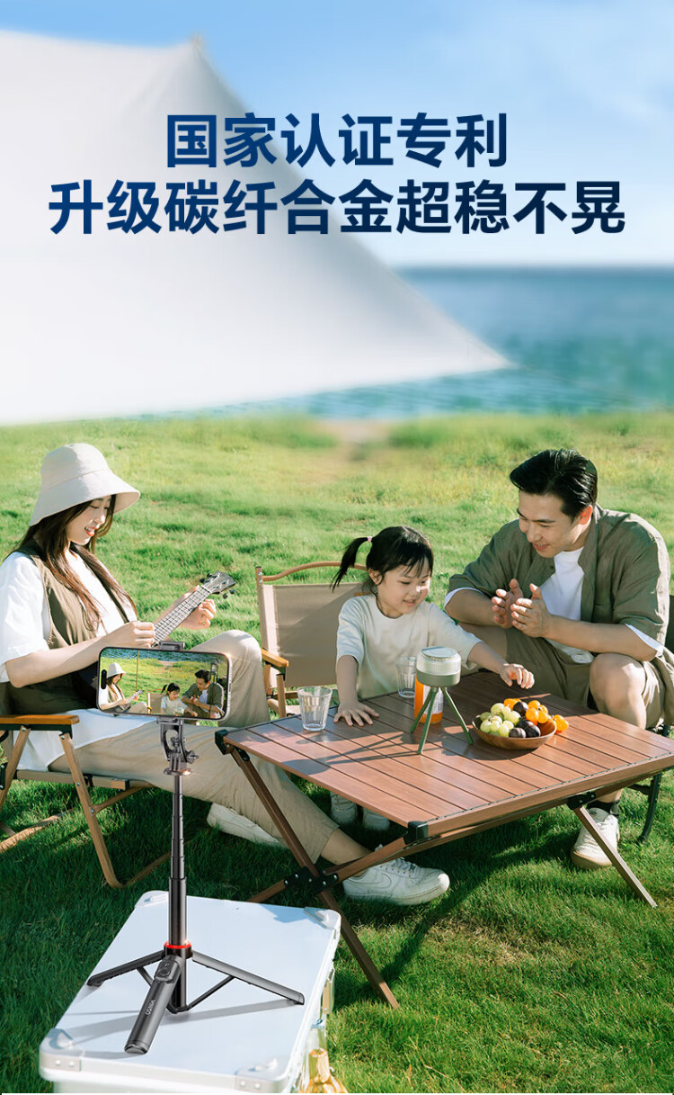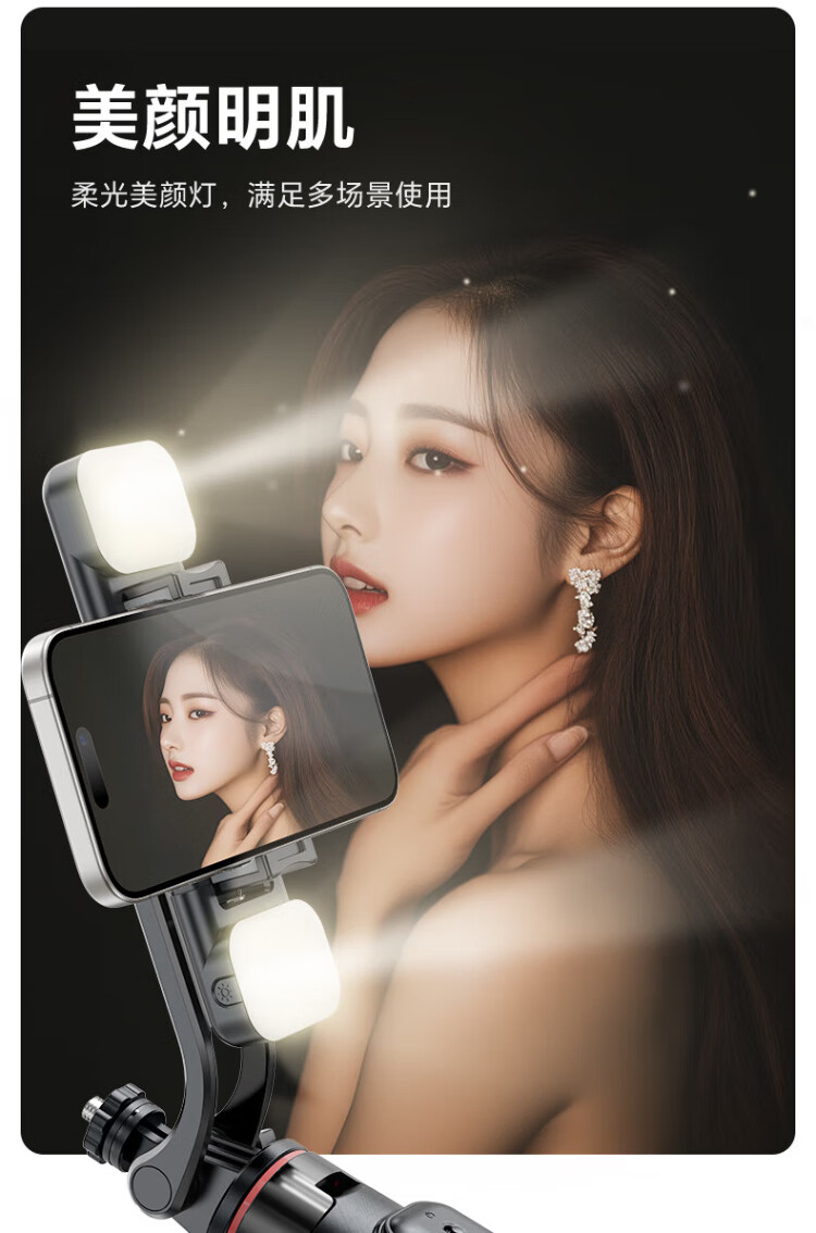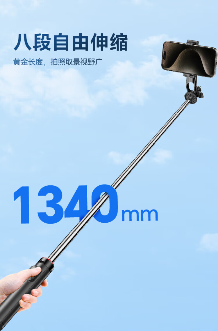 MINISO with beauty lamp, selfie stick with lamp, handheld mobile phone telescopic tripod, travel selfie artifact, 360-degree rotating fully automatic multi-functional portable floor stand