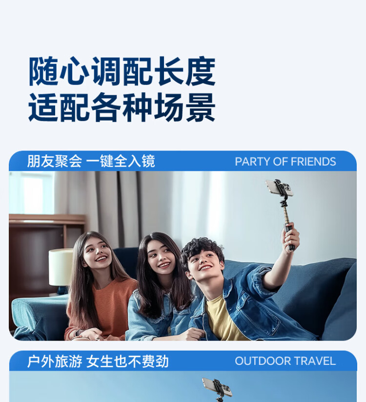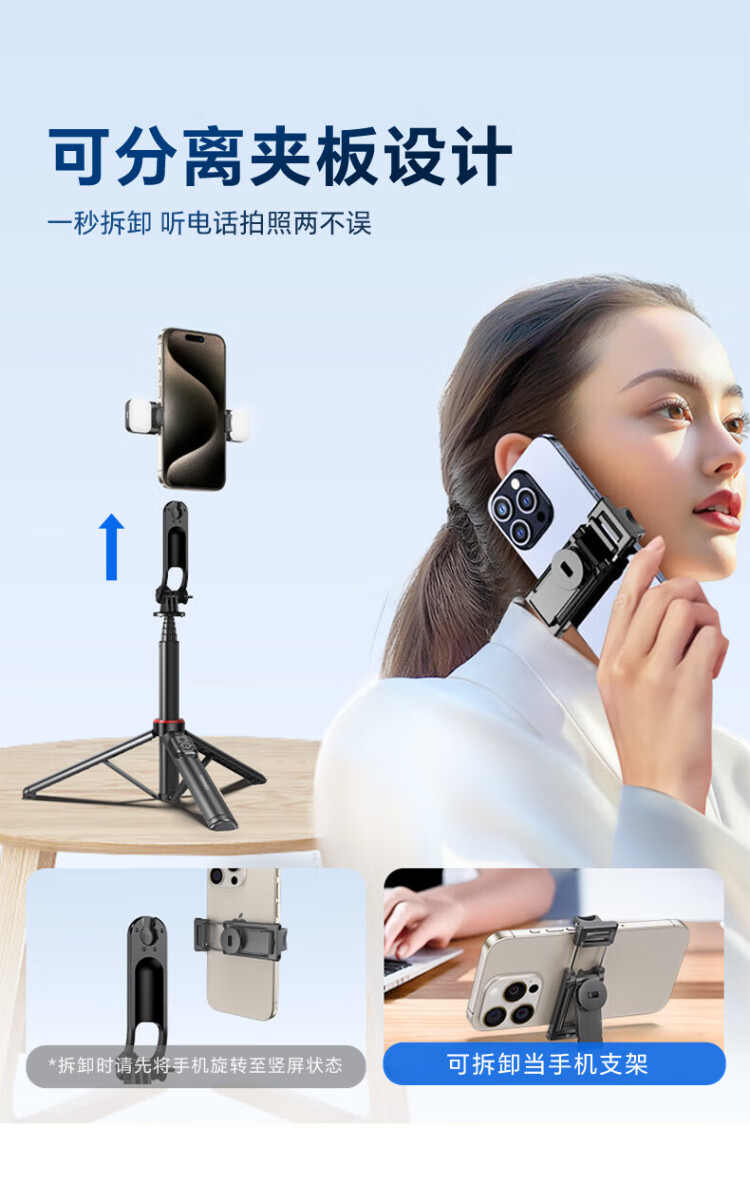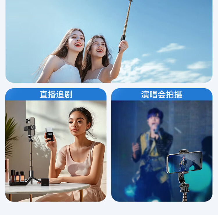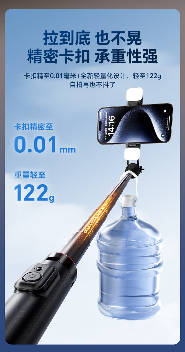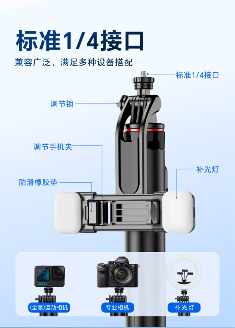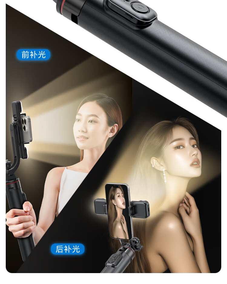 MINISO with beauty lamp, selfie stick with lamp, handheld mobile phone telescopic tripod, travel selfie artifact, 360-degree rotating fully automatic multi-functional portable floor stand