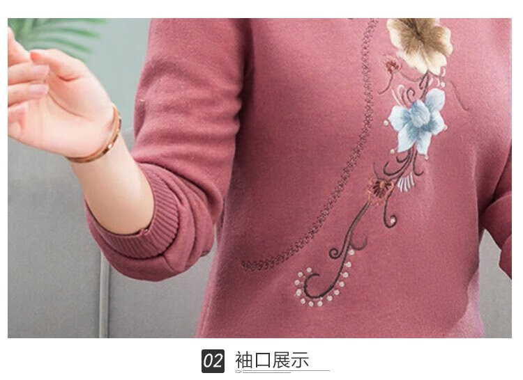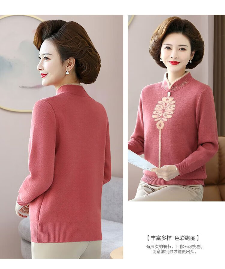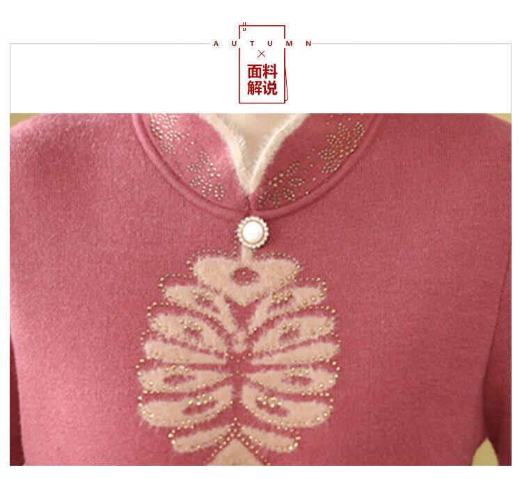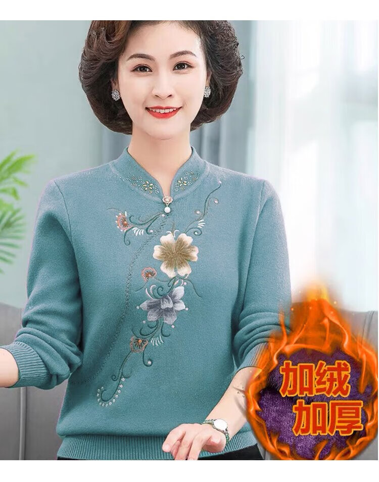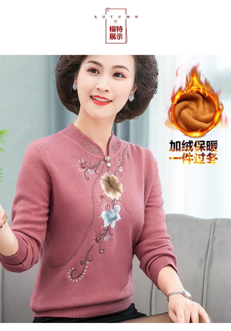 Yu Zhaolin mother's sweater women's winter clothing plus velvet knitwear for the elderly thickened knitted bottoming shirt Y244Z6013
