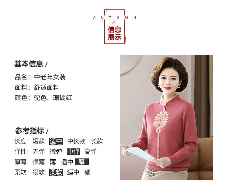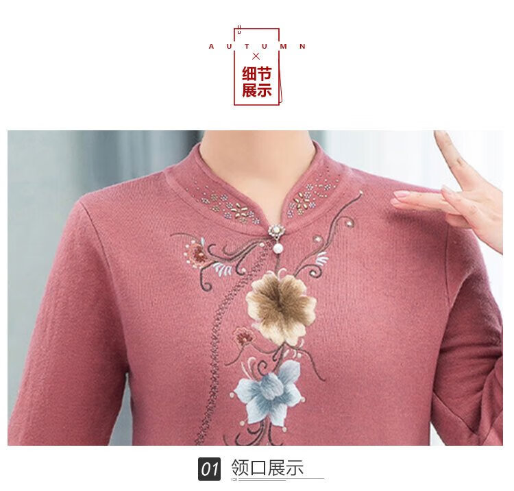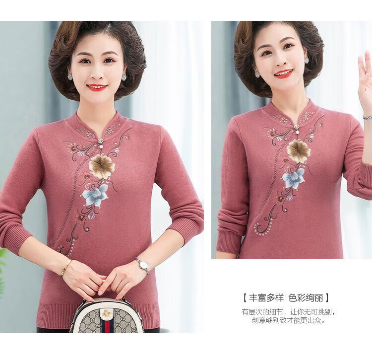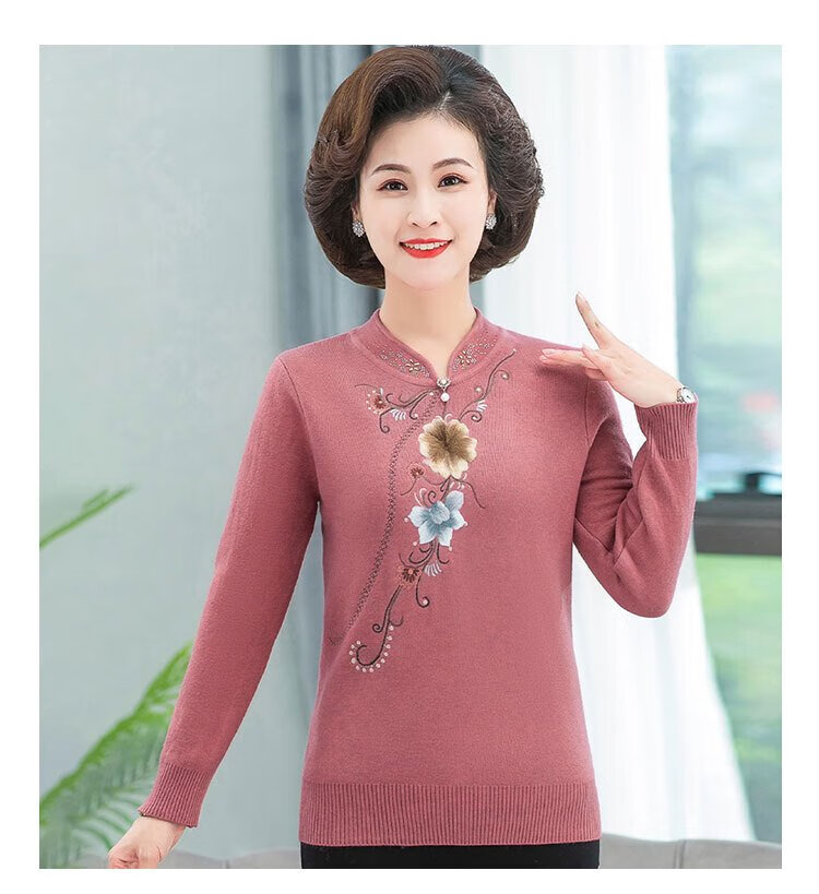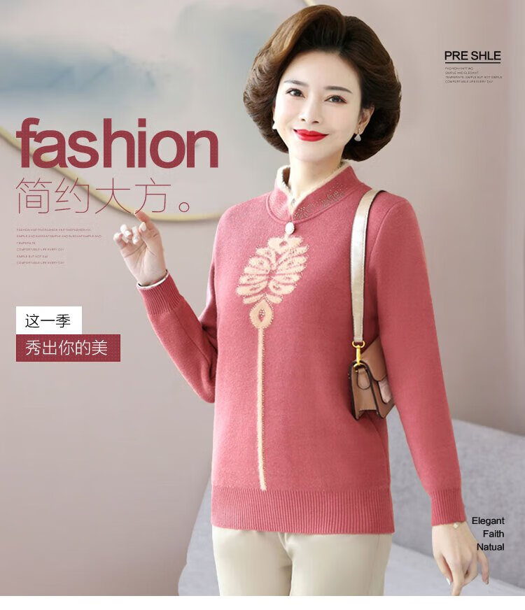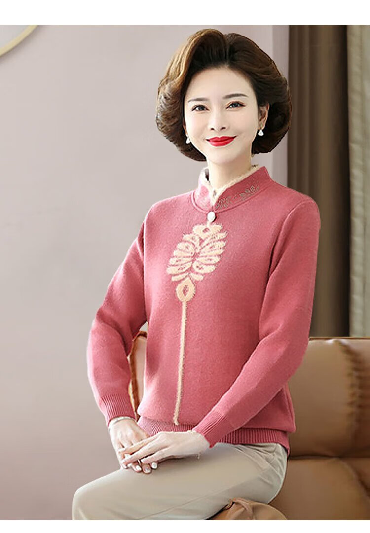 Yu Zhaolin mother's sweater women's winter clothing plus velvet knitwear for the elderly thickened knitted bottoming shirt Y244Z6013