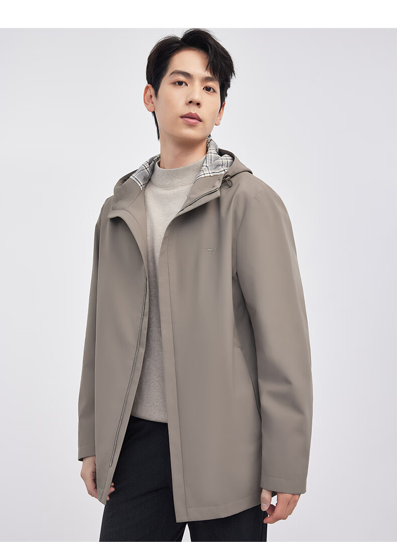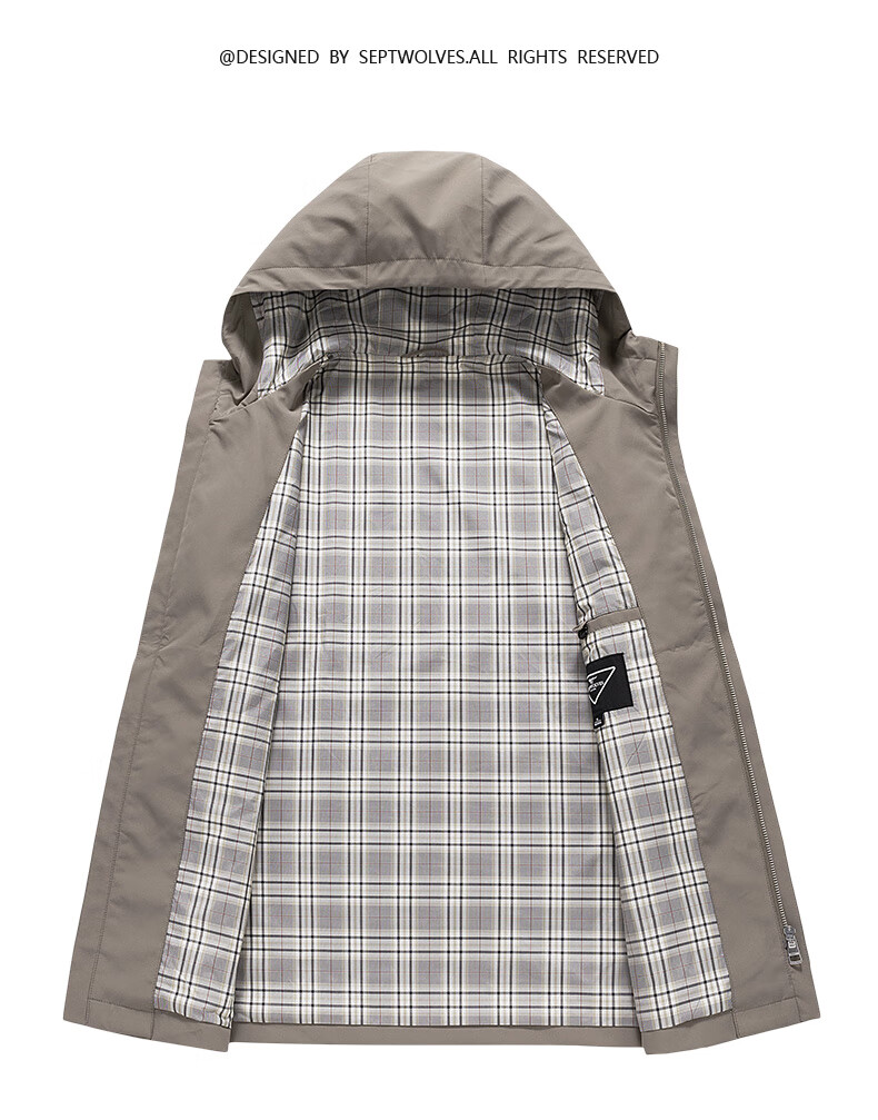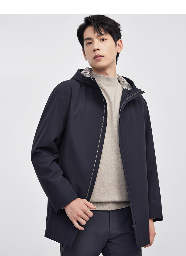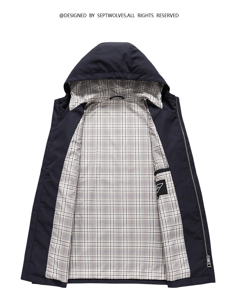 Septwolves hooded windbreaker men's autumn and winter business casual all-match coat mid-length jacket commuter cadre solid color top