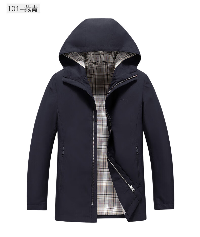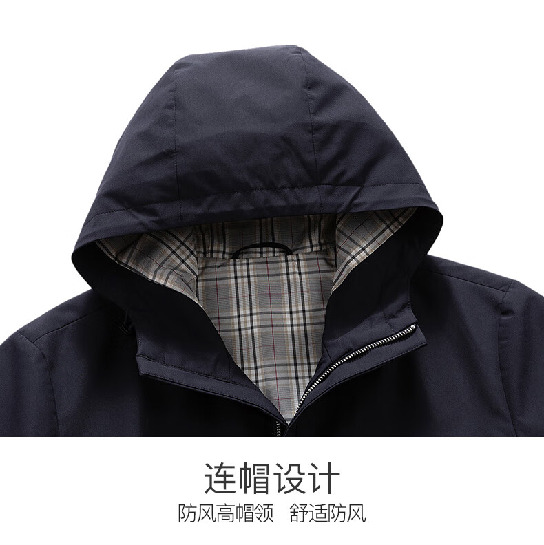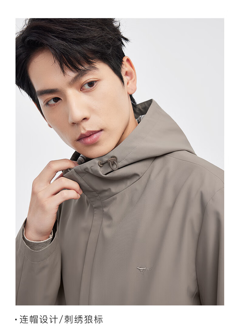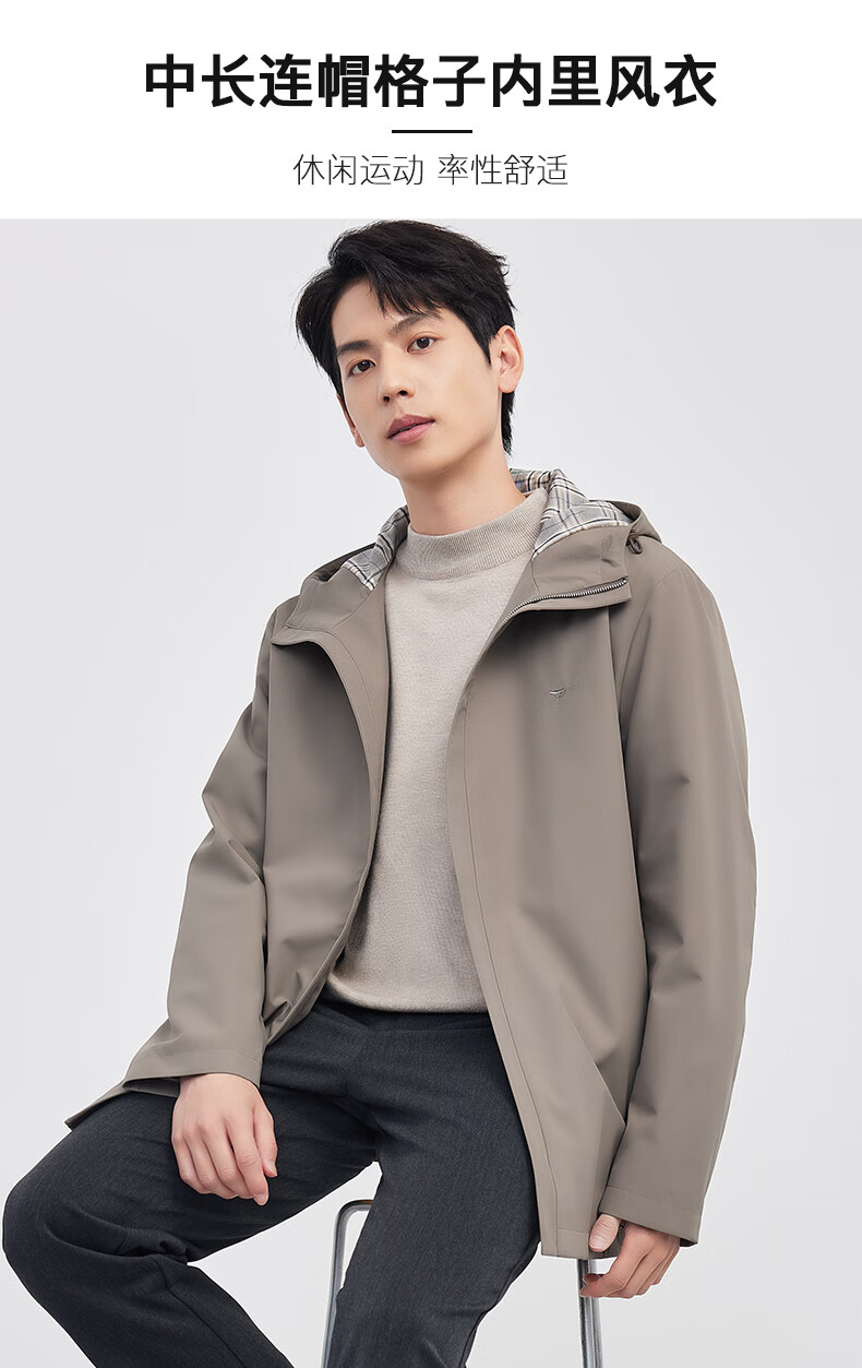 Septwolves hooded windbreaker men's autumn and winter business casual all-match coat mid-length jacket commuter cadre solid color top
