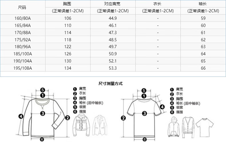 China (cm) 160-165/84-86 165-170 / 88-90 167-172 / 92-96 168-173 / 98-102 170-176 / 106-110