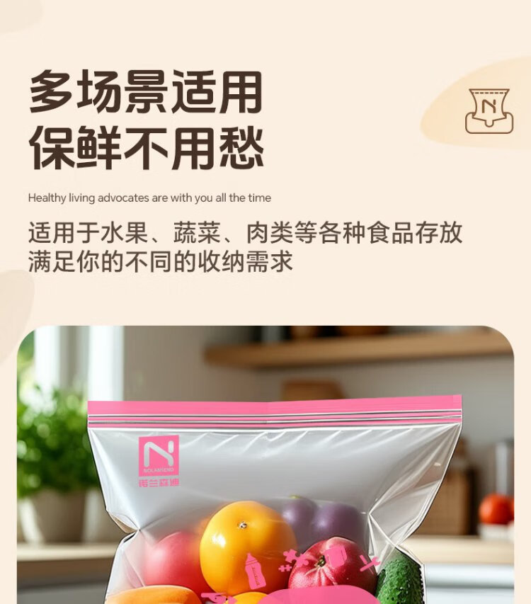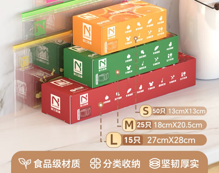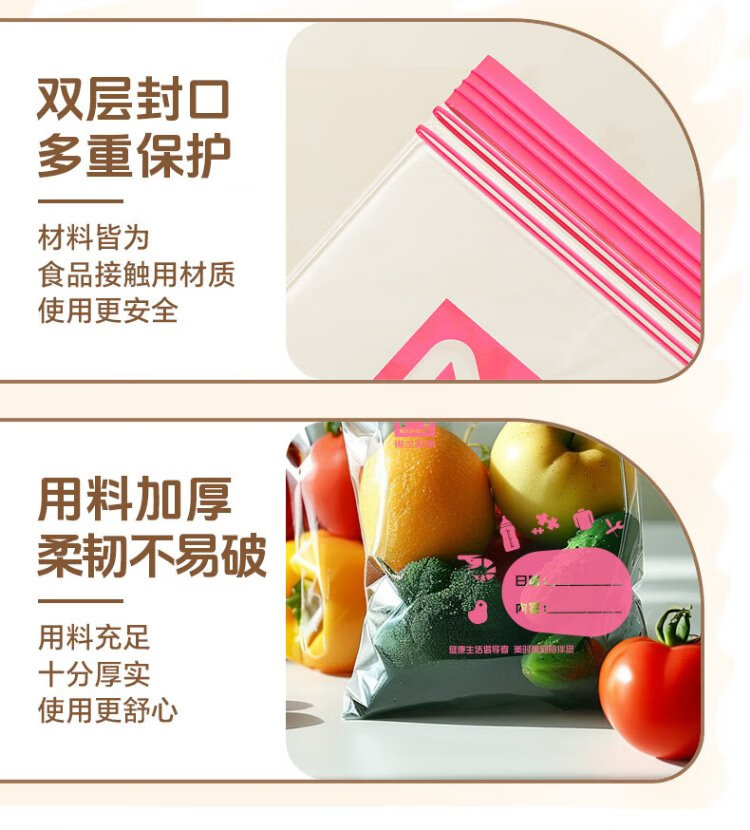 Nolan Sendi food fresh-keeping bag seal bag large size 30 double-layer clip chain dense sealing kitchen frozen food dense bag