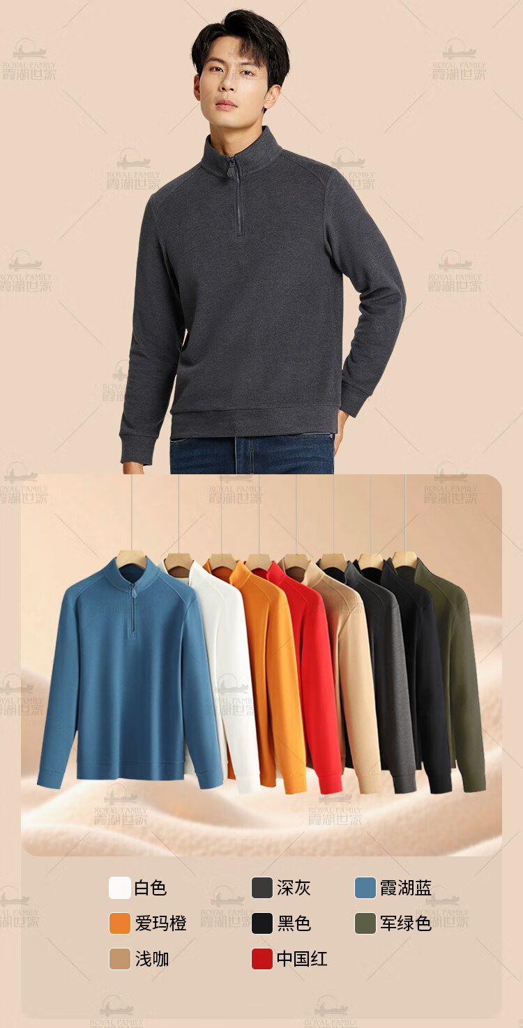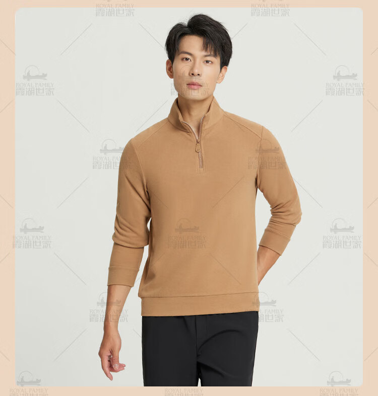 Xiahu Shijia authorized Zhende velvet long-sleeved T-shirt men's velvet 2025 autumn stand-up collar half-zip warm base shirt 091