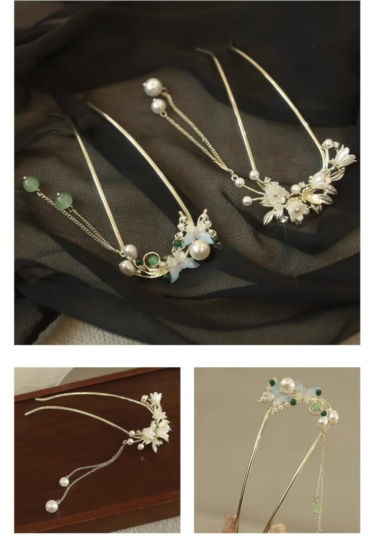 Hairpin for evening hair, lily of the valley tassel, U-shaped hairpin, high-end new Chinese style hairpin, ancient style headdress, Mid-Autumn Festival gift