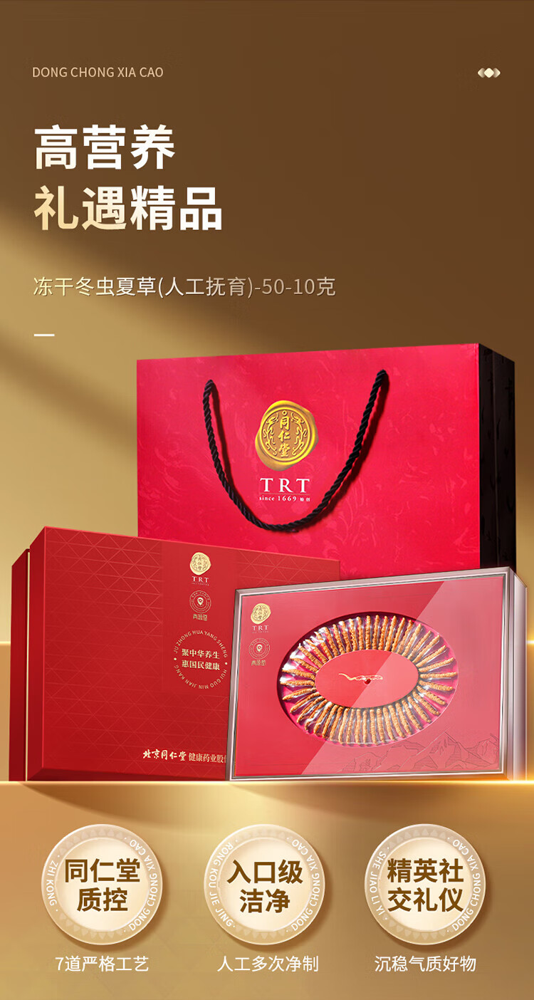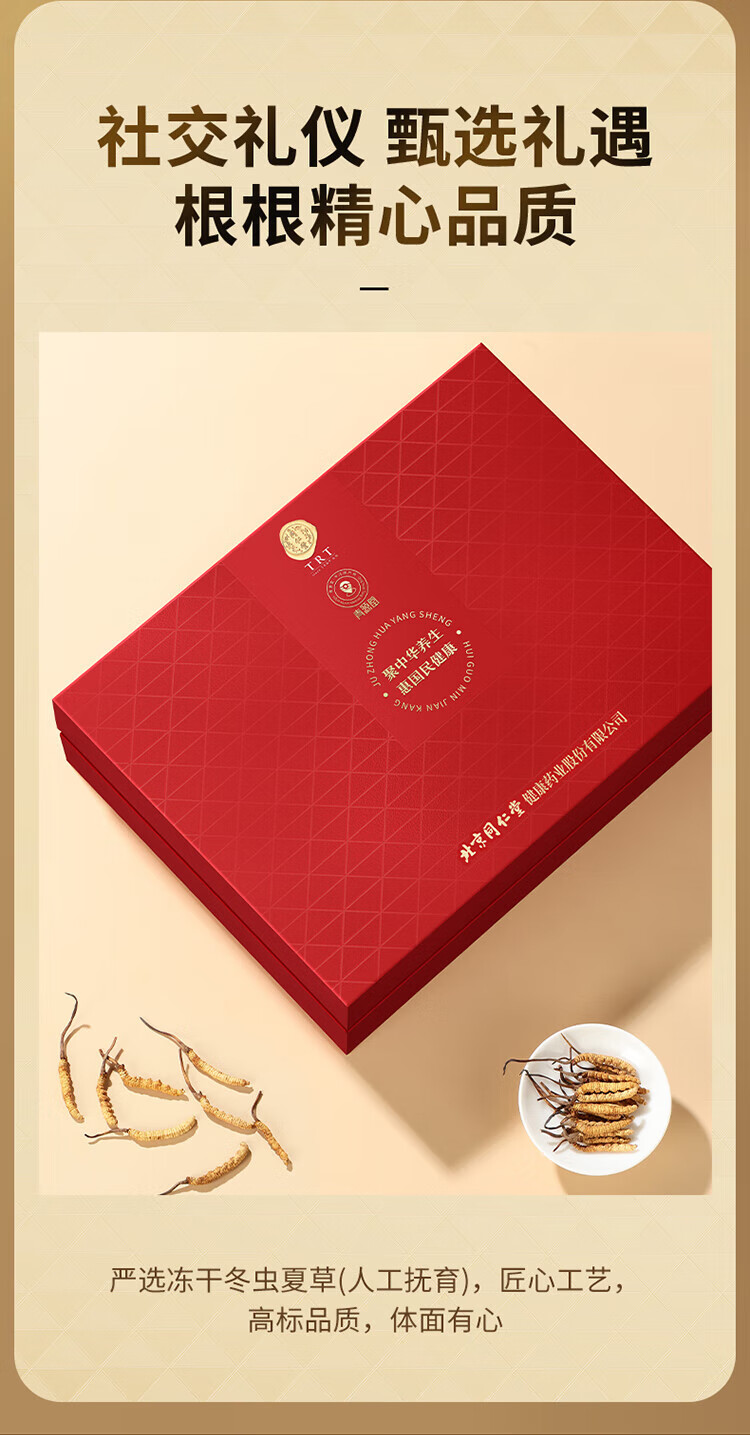 同仁堂品牌冬虫夏草约5根/g10g高端礼送长辈父母滋补营养礼盒北京同仁堂