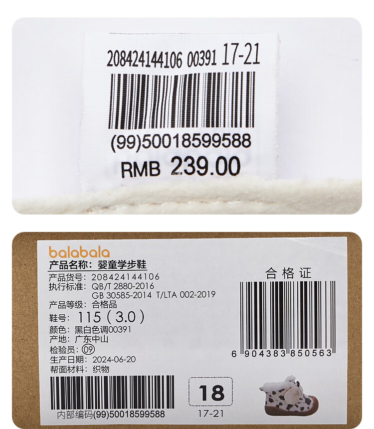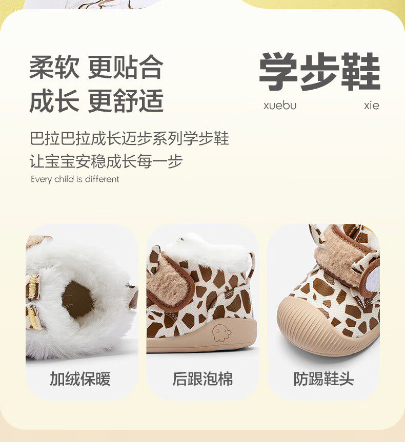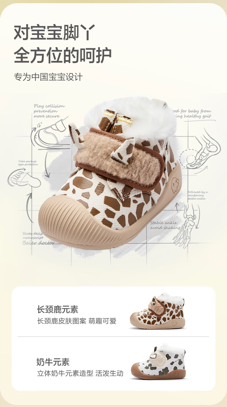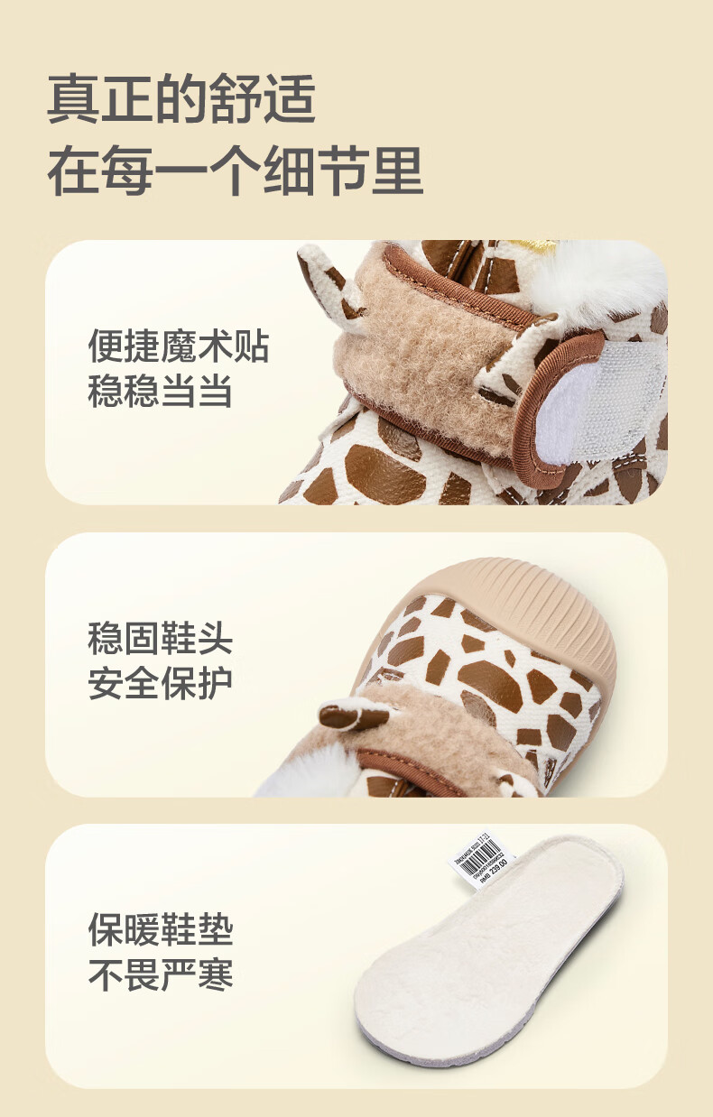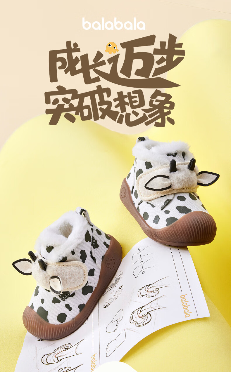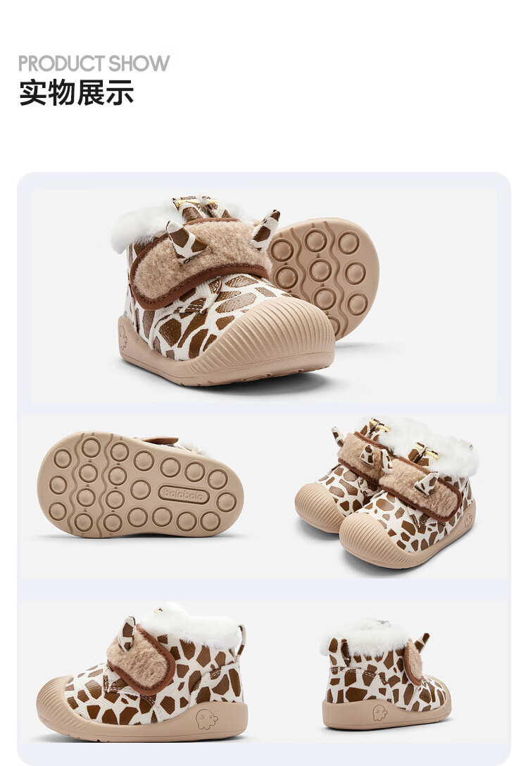 Balabala baby toddler shoes for boys and girls plus velvet thick boots 2024 autumn and winter high top shoes 208424144106