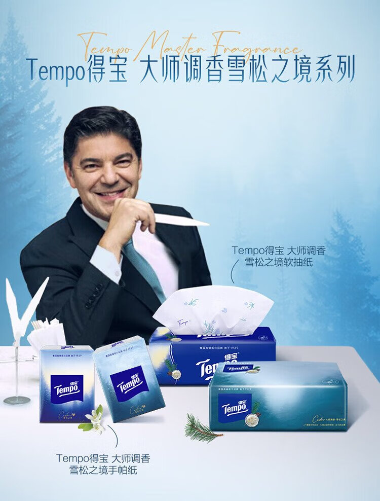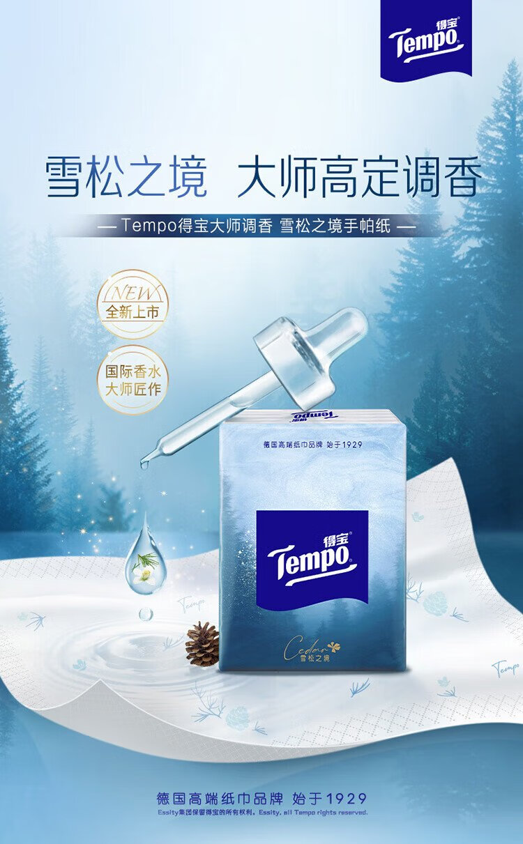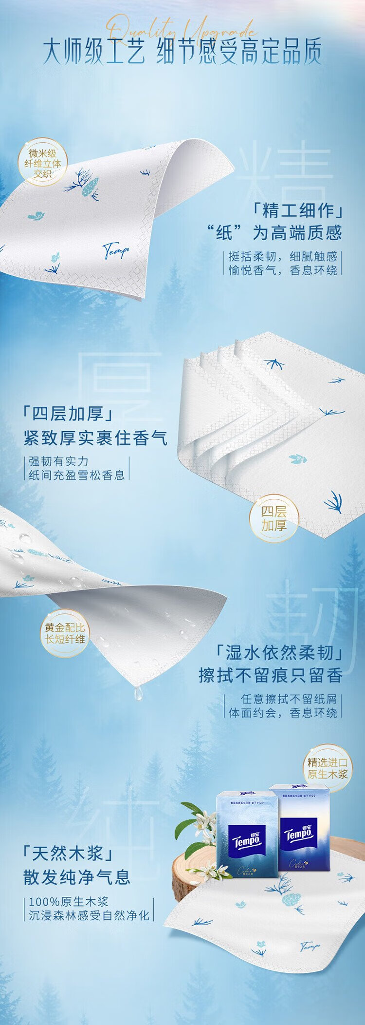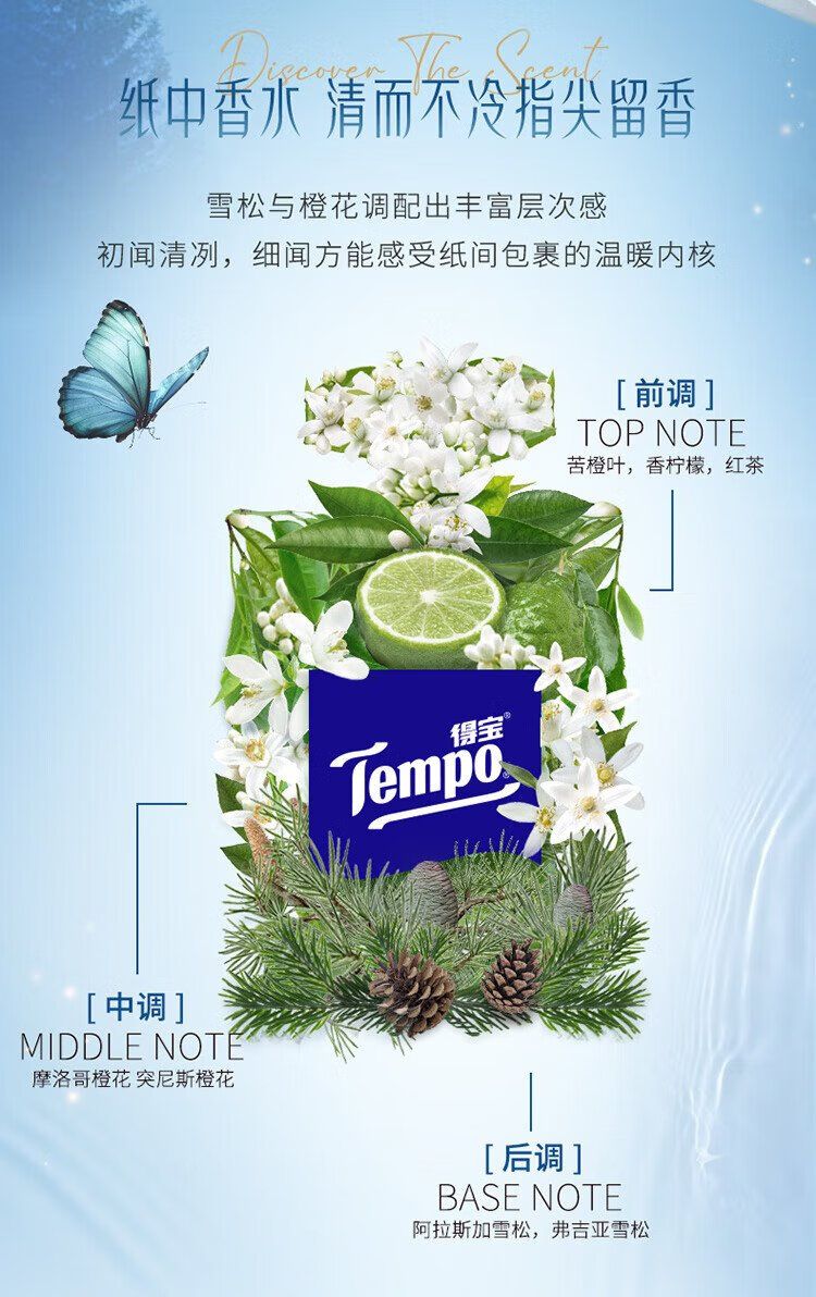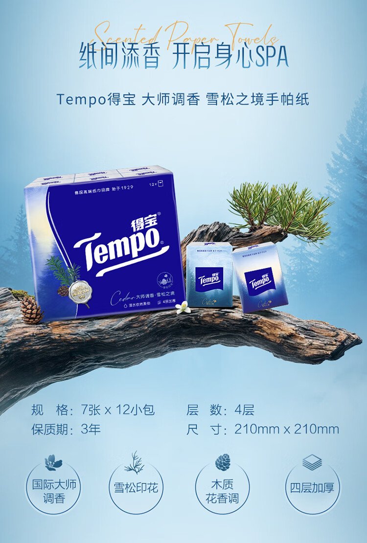 TEMPO high-end fragrance cedar printed handkerchief paper 4 layers 7 sheets