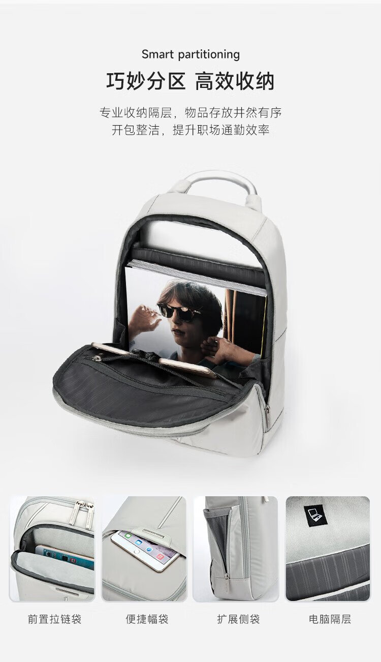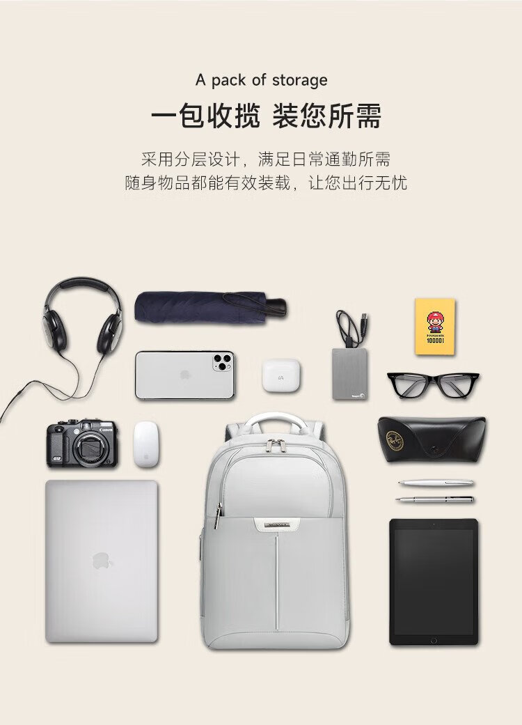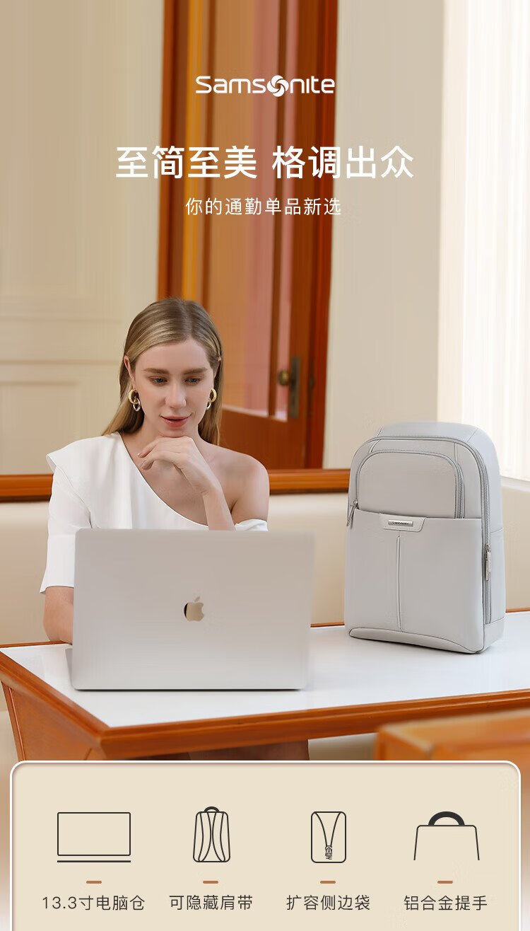 Samsonite computer bag, backpack, men's and women's commuter backpack, large capacity travel bag, 16-inch laptop bag, business school bag
