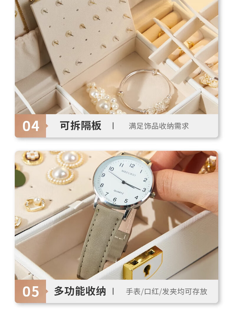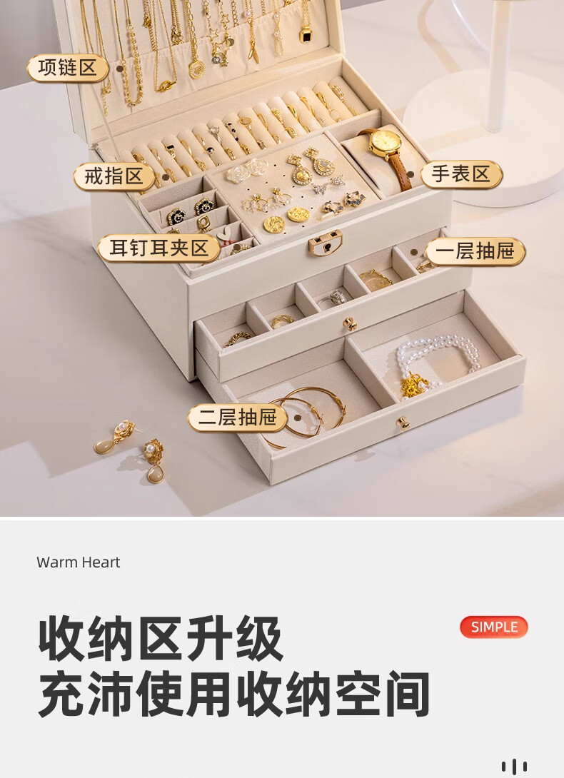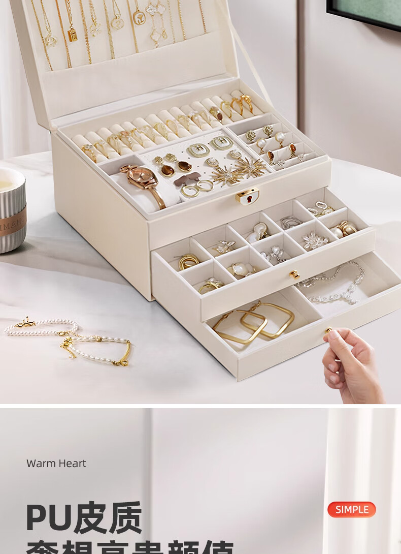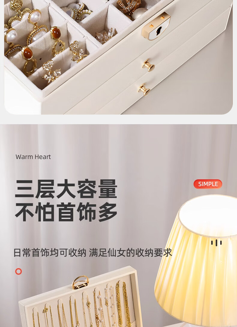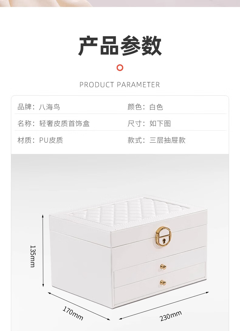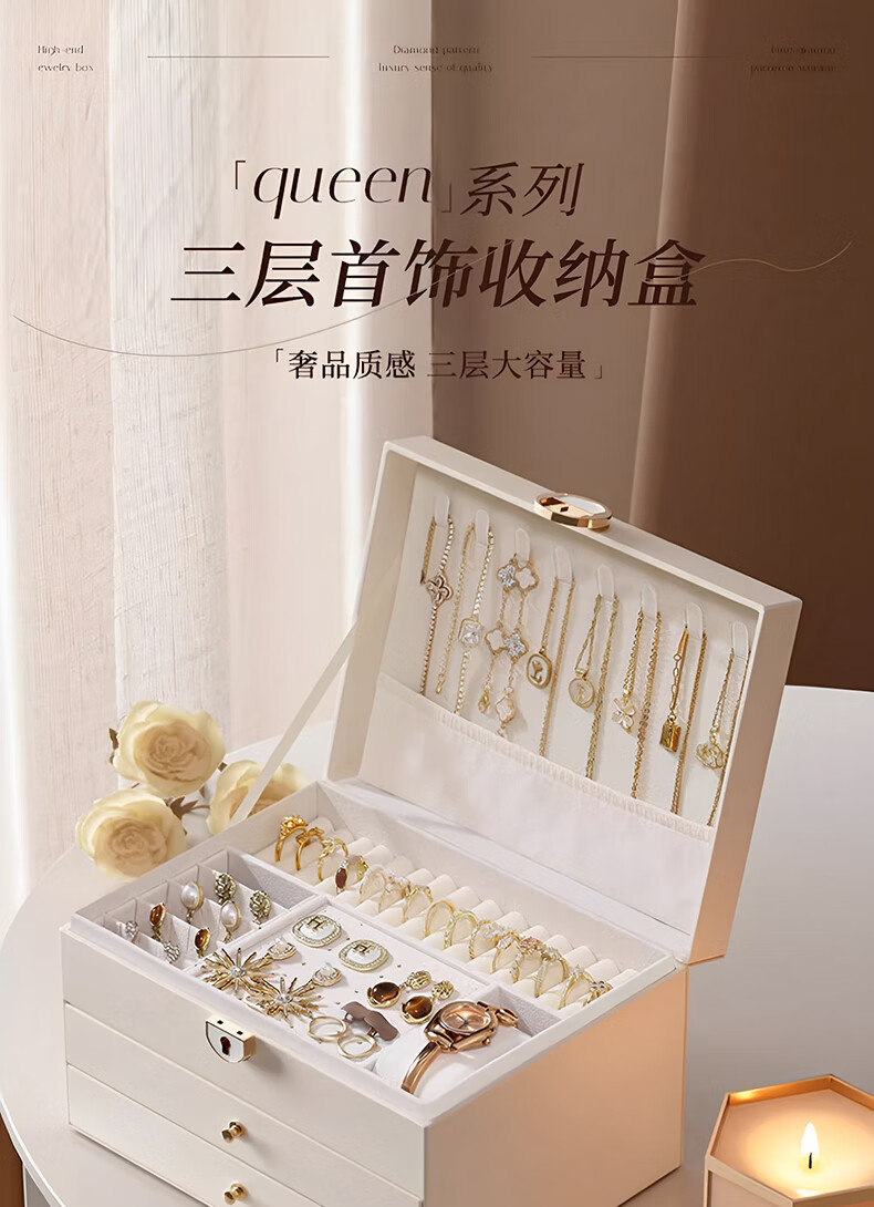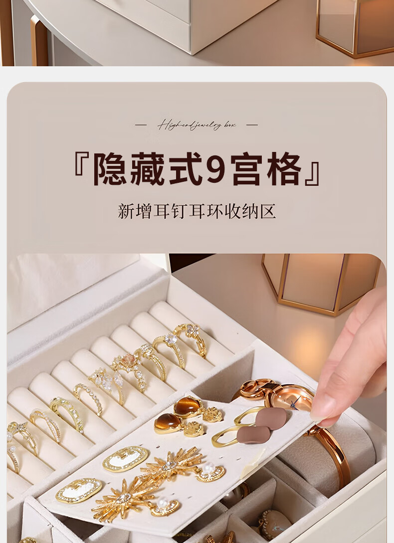 Eight seabird jewelry storage box with lock gold earrings necklace hand jewelry high-end exquisite multi-layered jewelry box Chinese Valentine's Day