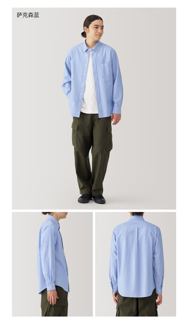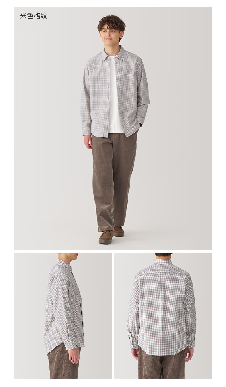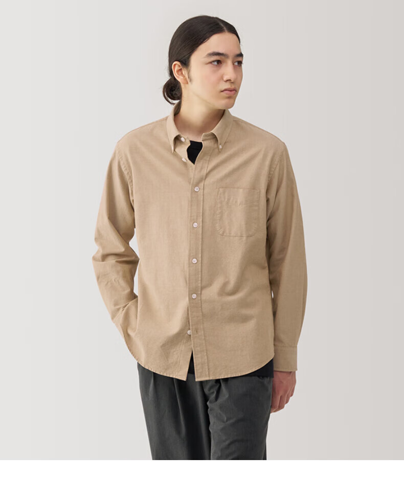 无印良品(MUJI)男式 水洗牛津纽扣领长袖衬衫 白色 L