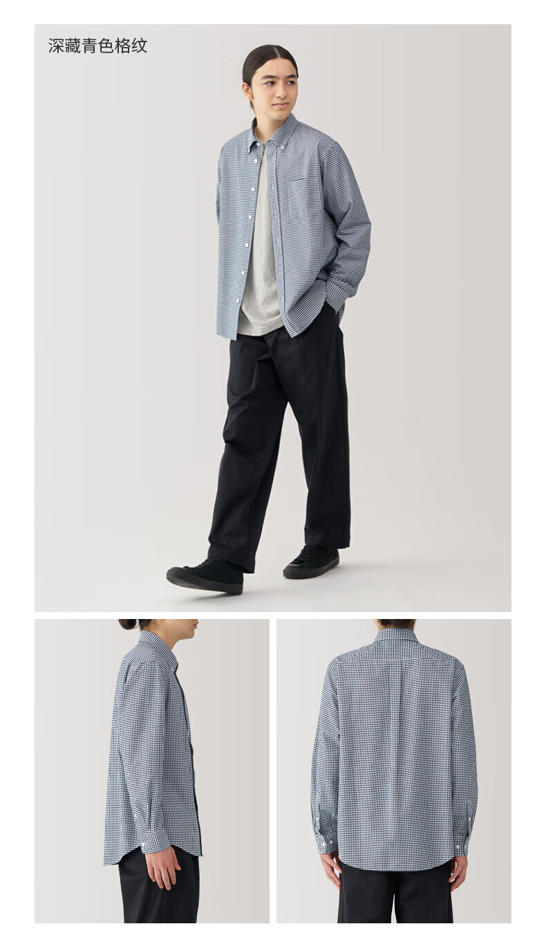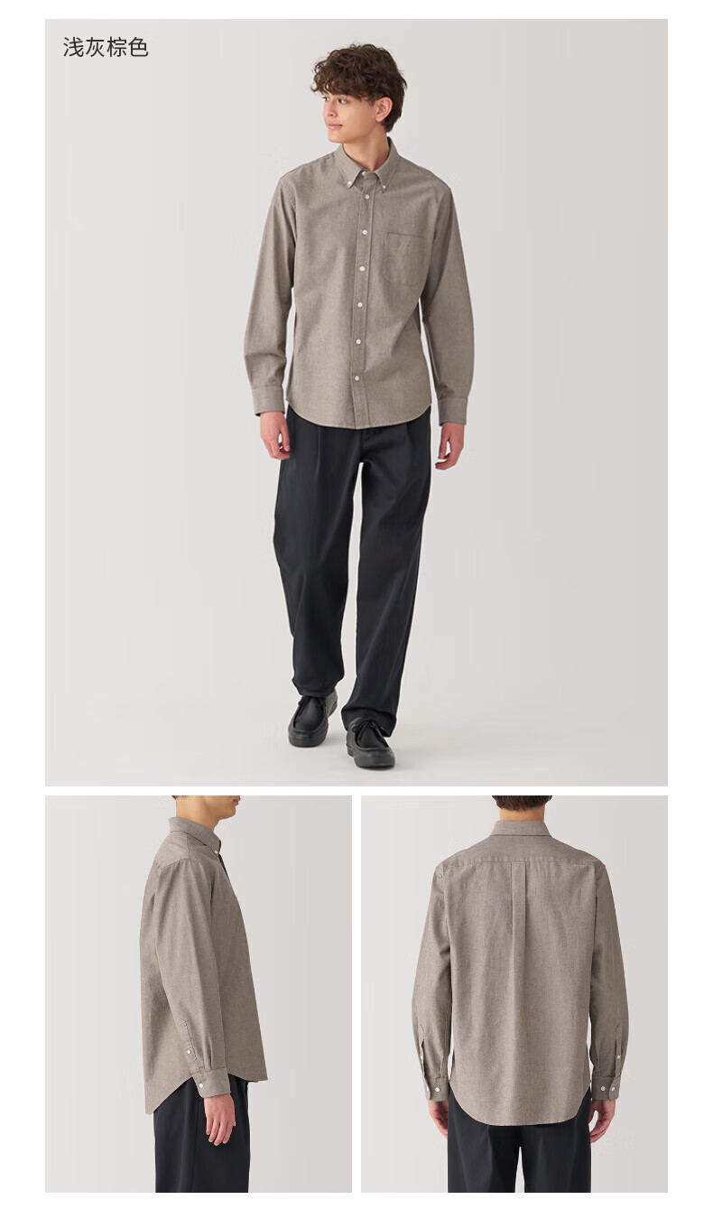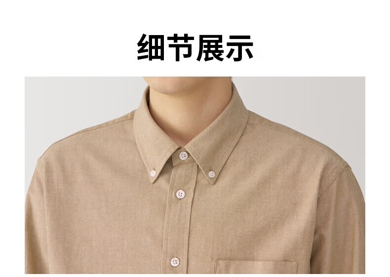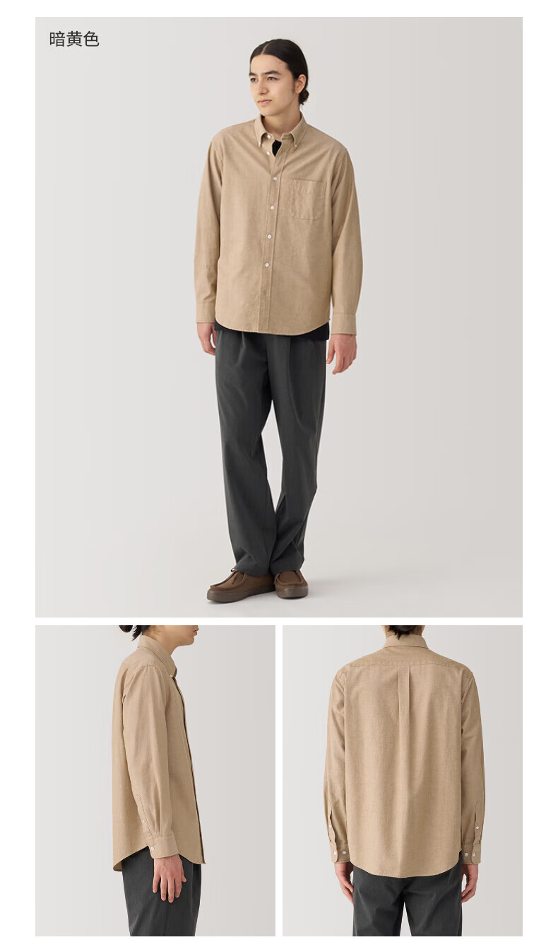 无印良品(MUJI)男式 水洗牛津纽扣领长袖衬衫 白色 L