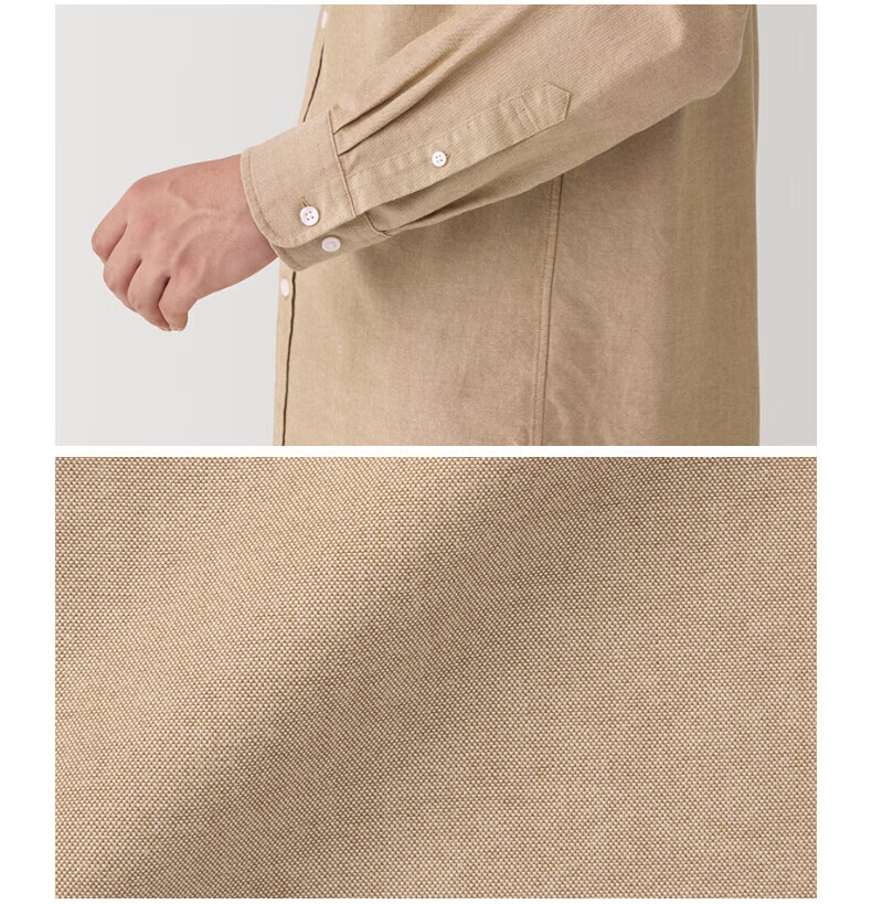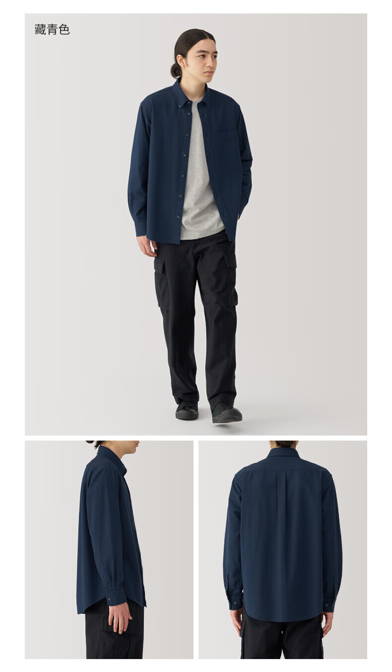 无印良品(MUJI)男式 水洗牛津纽扣领长袖衬衫  白色 L