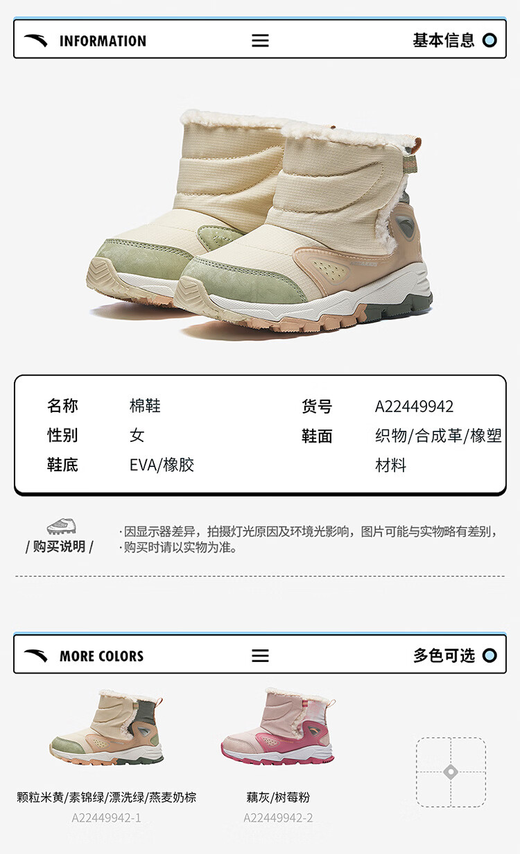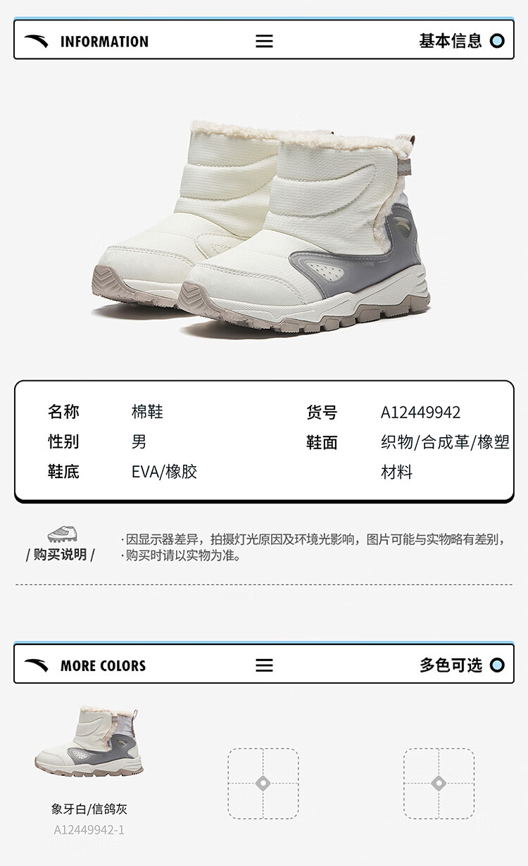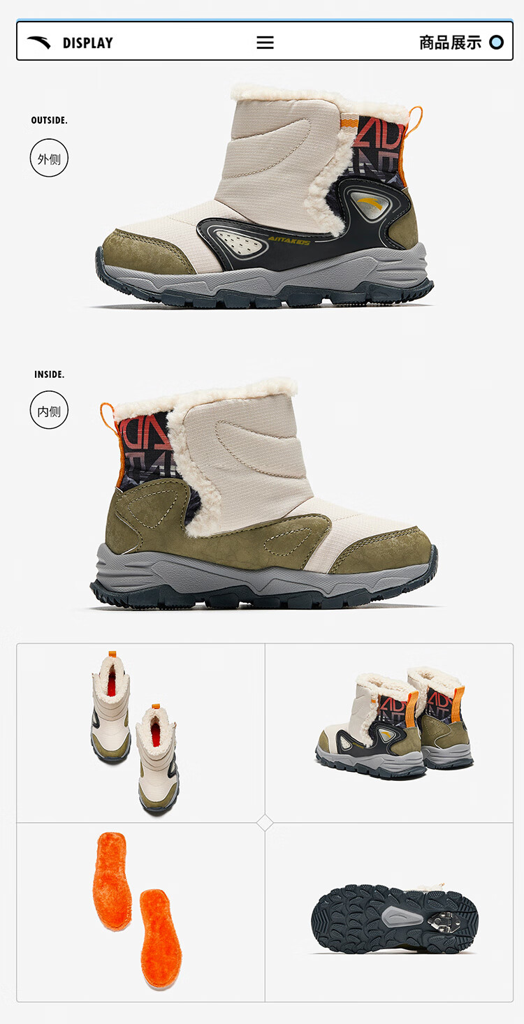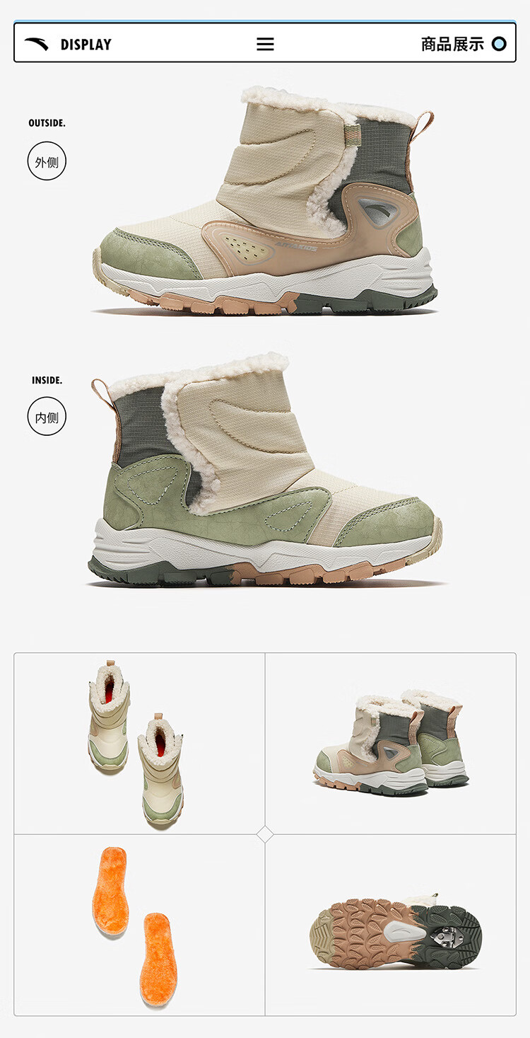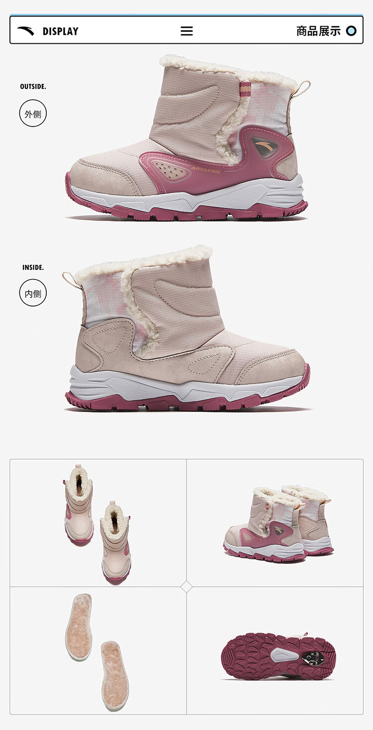 Anta children's velvet warm sports shoes for boys, cotton shoes, cotton boots, children's winter shoes, snow boots A12449942