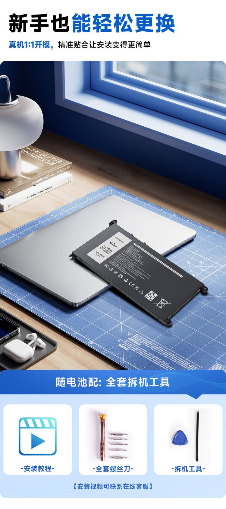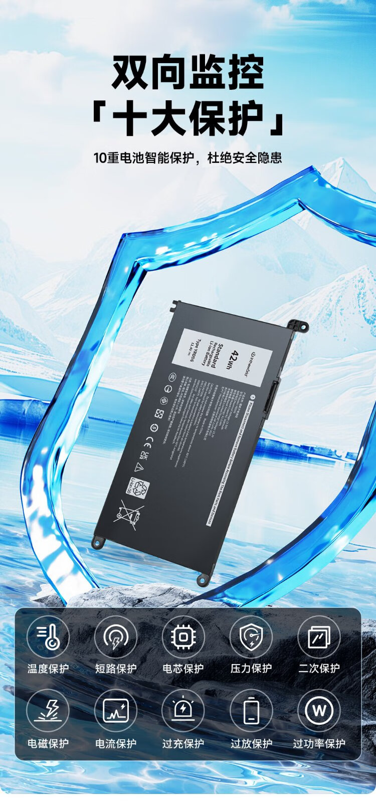 Jichuan is suitable for Dell Inspiron 5493 5593 5584 5585 5485 5482 Vostro 5490 YRDD6 laptop battery built-in replacement