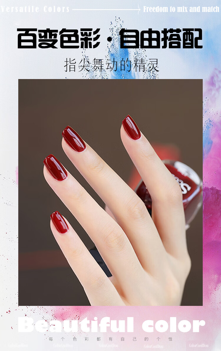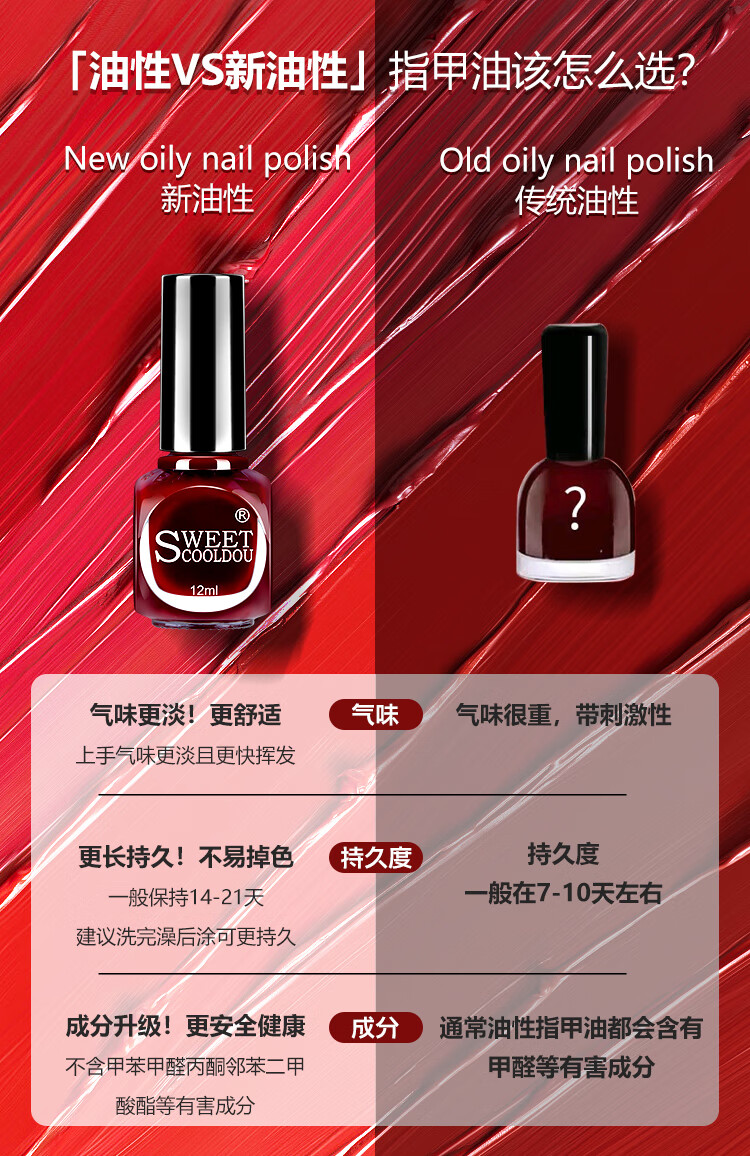 SweetCoolDou Non-Tearable Oily Nail Polish No Bake Quick Drying Drunken Red 12ml Burgundy Cherry Red Manicure CD038