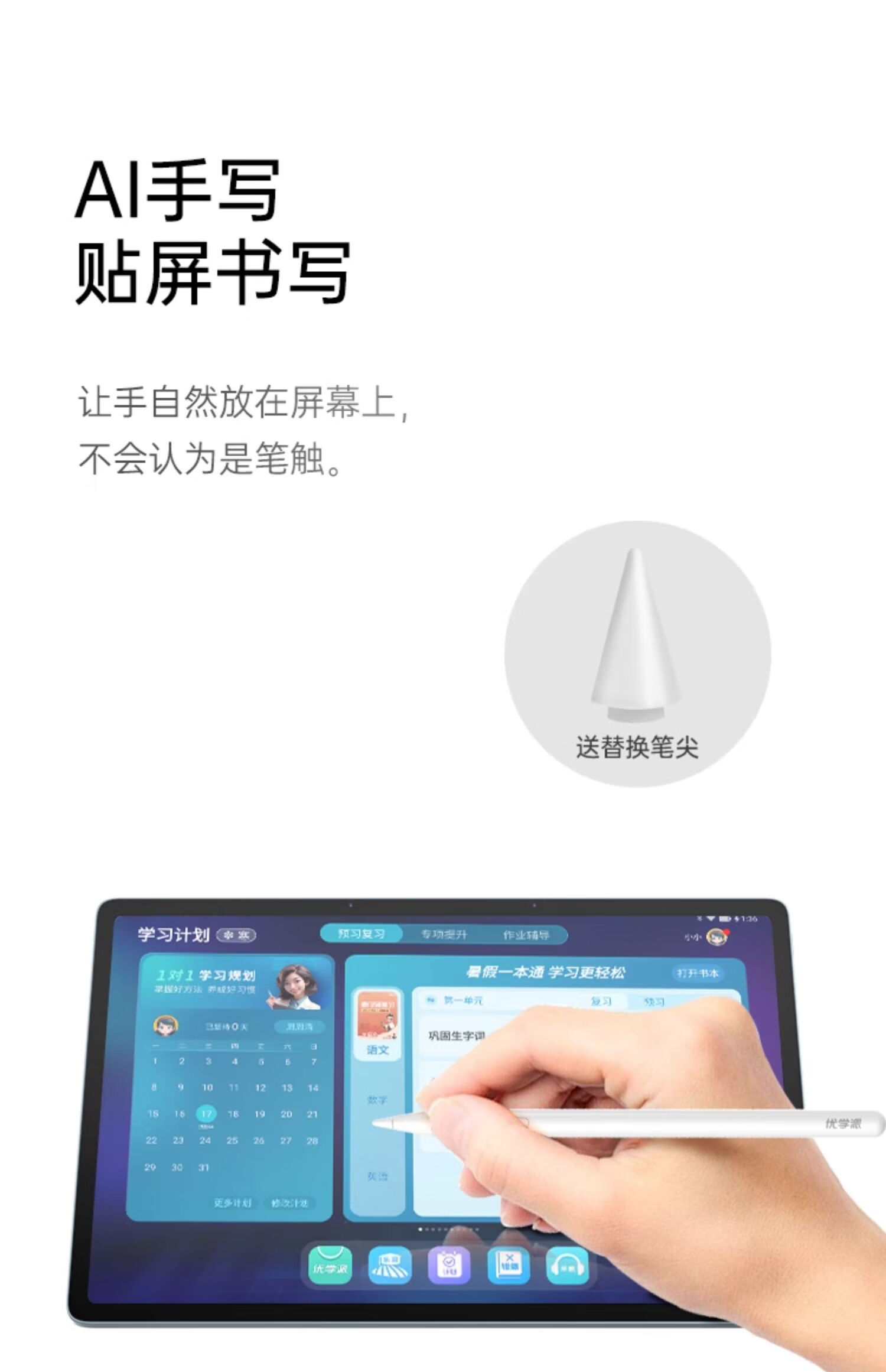 Youxuepai AI stylus Y10 capacitive touch screen pen is suitable for some Youxuepai models. Consult customer service before placing an order.