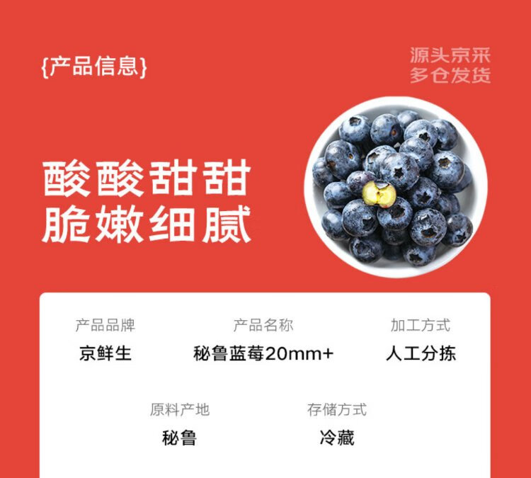 Jingxiansheng Imported Peruvian Blueberry Big Mac 20mm+ 4 boxes 125g/box fresh fruit straight from the source