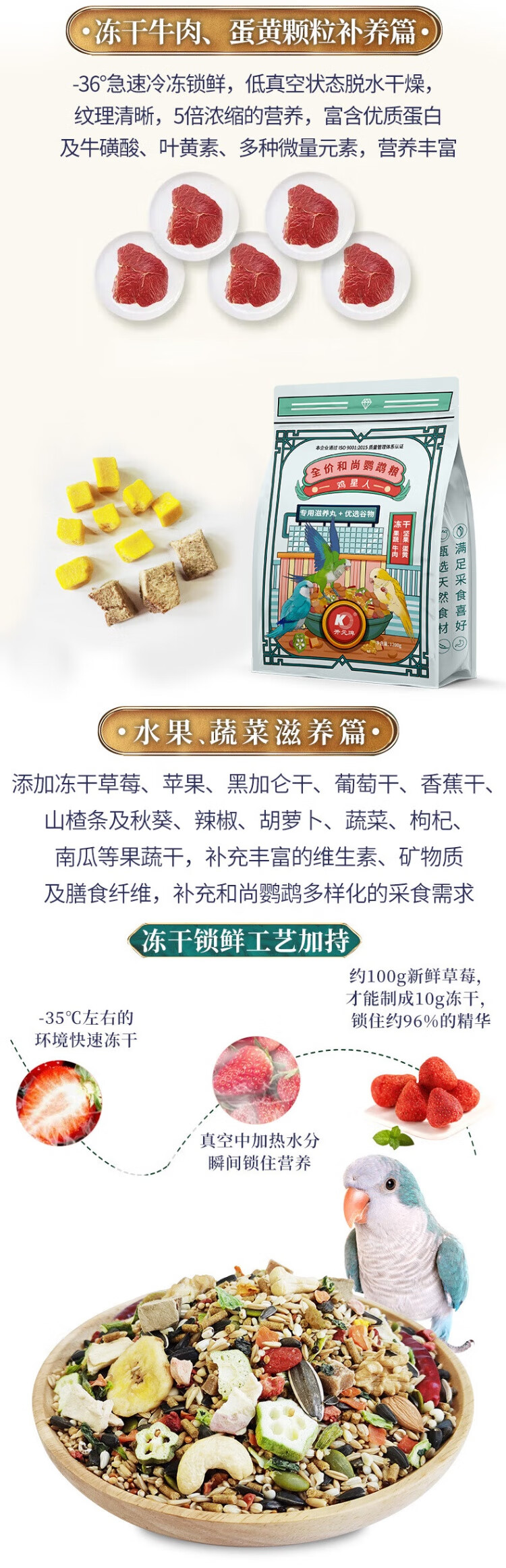 Kaiyuan (KO) full price monk parrot feed (1200g) Ji Xingren series monk parrot special food