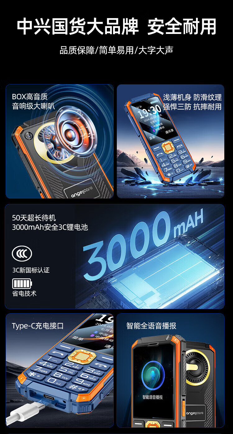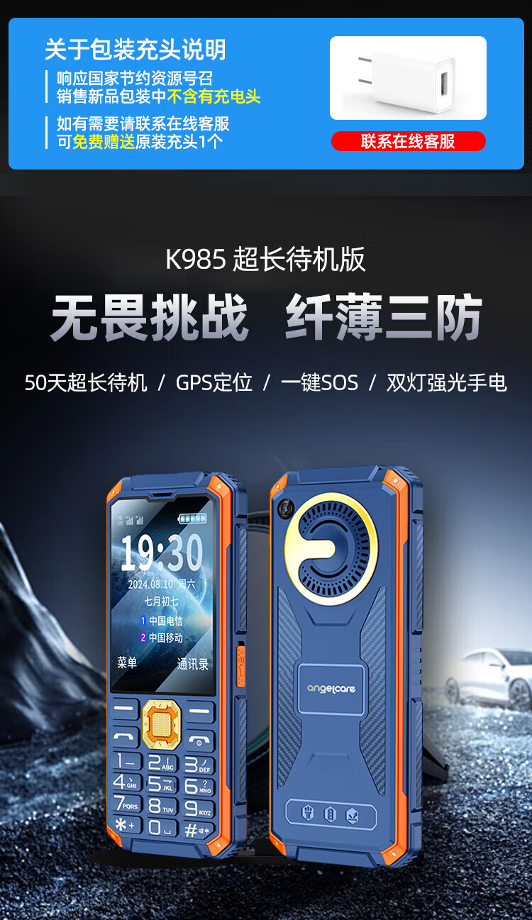 Shoubao K985 Full Netcom 4G three-proof mobile phone for the elderly with super long standby, big characters and loud mobile phone for the elderly, dual SIM straight board, elderly button student backup feature phone, blue