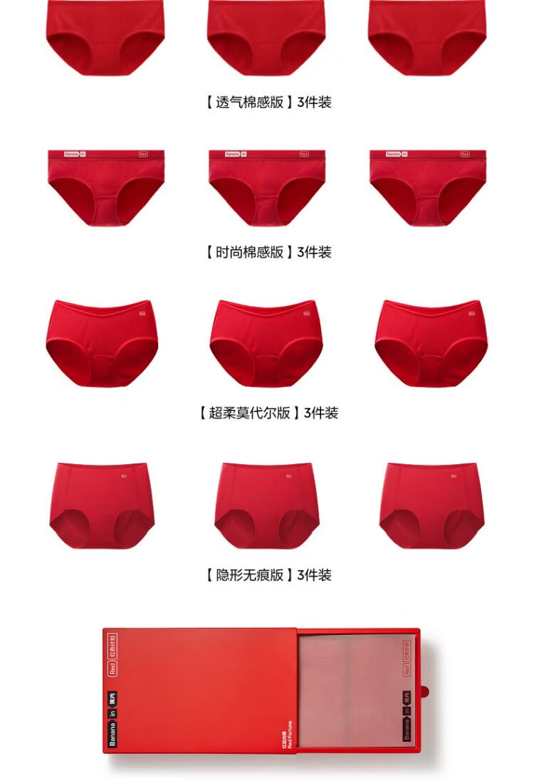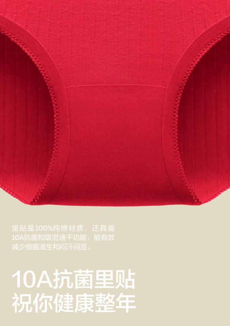 Jiao Nei Red Project 311S Women's Briefs 10A Antibacterial Zodiac Year of the Horse Ribbed Cotton Feel Breathable Gift Box 3 Pieces